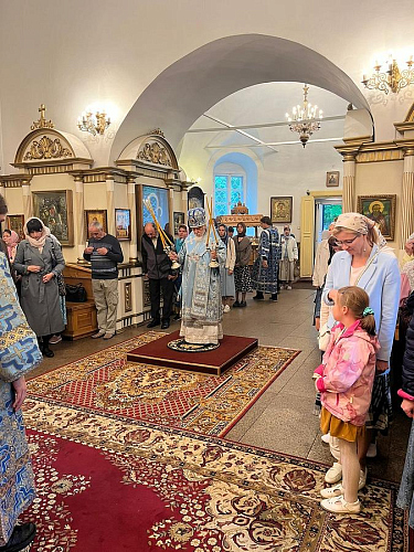 21 июля 2022 года, в день празднования явления иконы Пресвятой Богородицы во граде Казани, епископ Верейский Пантелеимон, викарий Святейшего Патриарха Московского и всея Руси, временно управляющий Юго-Западным викариатством гор. Москвы, совершил Божественную Литургию в храме Казанской иконы Божией Матери в Узком в день престольного праздника.