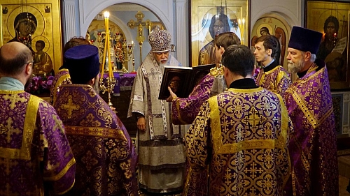 Богослужебные песнопения исполнил хор храма под управлением регента Алексея Любимова.