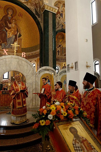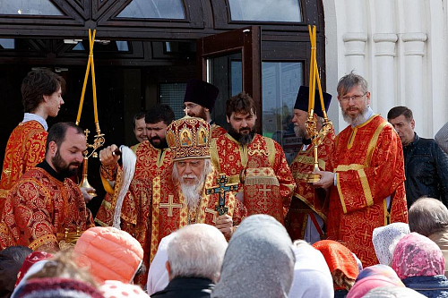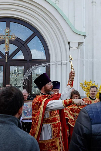 По окончании Божественной Литургии Преосвященный Пантелеимон возглавил крестный ход, а также совершил литию на месте погребения первого настоятеля храма протоиерея Владимира Ковтуненко.