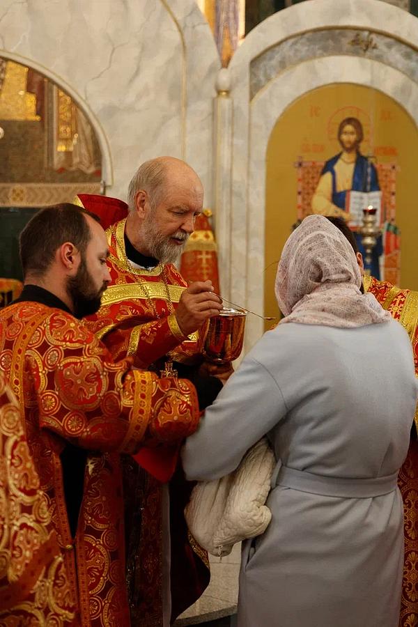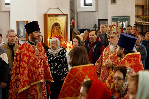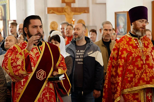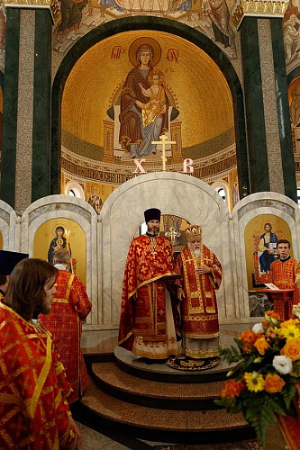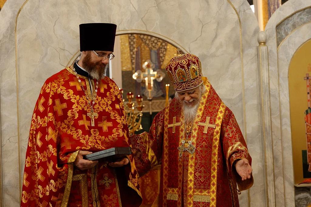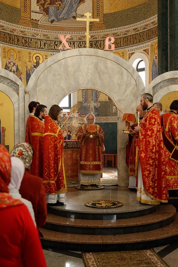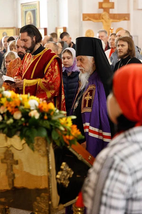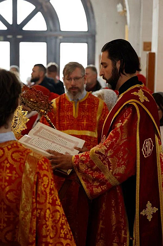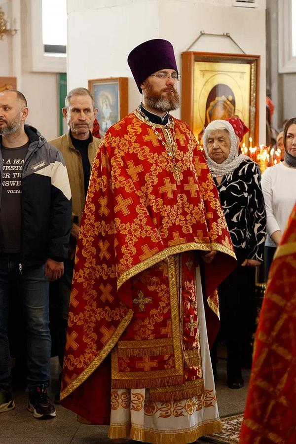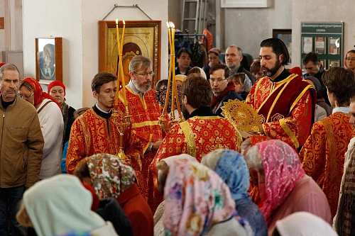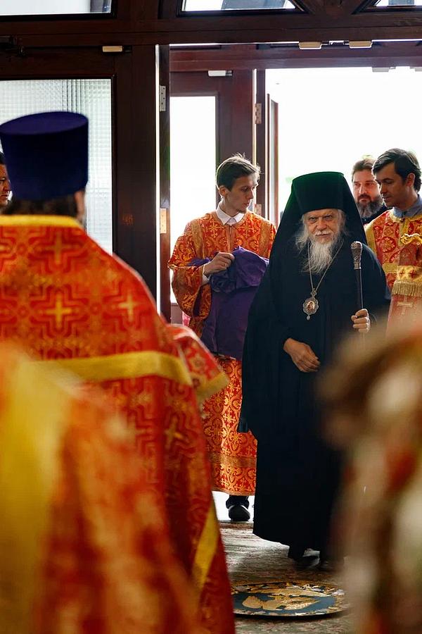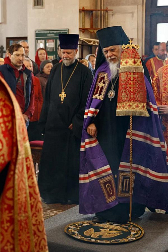 Его Преосвященству сослужили: протоиерей Анатолий Кожа, благочинный Параскево-Пятницкого церковного округа, настоятель храма Великомученицы Параскевы Пятницы в Качалове; иерей Димитрий Самсонов, исполняющий обязанности настоятеля храма святителя Стефана, епископа Великопермского, в Южном Бутове; иерей Николай Лузанов, настоятель храма Покрова Пресвятой Богородицы города Долгопрудного Московской области; иерей Михаил Голубков, клирик храма святого благоверного царевича Димитрия при Первой градской больнице г. Москвы; диакон Иоанн Клинцов, клирик Кафедрального соборного храма Христа Спасителя; диакон Димитрий Бакланов, клирик храма Успения Пресвятой Богородицы в Вешняках г. Москвы.