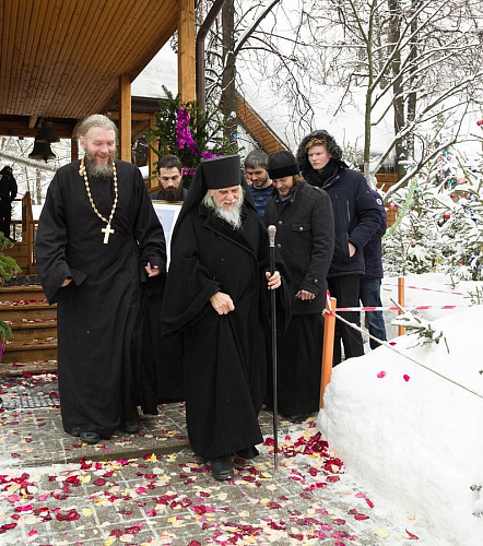 Преосвященному архипастырю сослужили настоятель храма в честь иконы Божией Матери «Отрада и Утешение» на Каховкеиерей Александр Мелин; клирик Ставропольской епархии, руководитель пресс-службы Синодального комитета Русской Православной Церкви по взаимодействию с казачествомиерей Тихон Лазуткин; клирик храма Покрова Пресвятой Богородицы в Покровско–Стрешневе г. Москвыиерей Николай Павлов; клирик храма благоверного царевича Димитрия при ГКБ № 1 имени Н.И. Пирогова, секретарь Комиссии по больничному служению при Епархиальном совете г. Москвыиерей Михаил Голубков; клирик храма благоверного царевича Димитрия при ГКБ № 1 имени Н.И. Пирогова, руководитель сектора по взаимодействию с регионами Синодального отдела по благотворительности дьякон Игорь Куликов и клирик храма святителя Николая Мирликийского в Дербеневе г. Москвы дьякон Максим Сереженко.