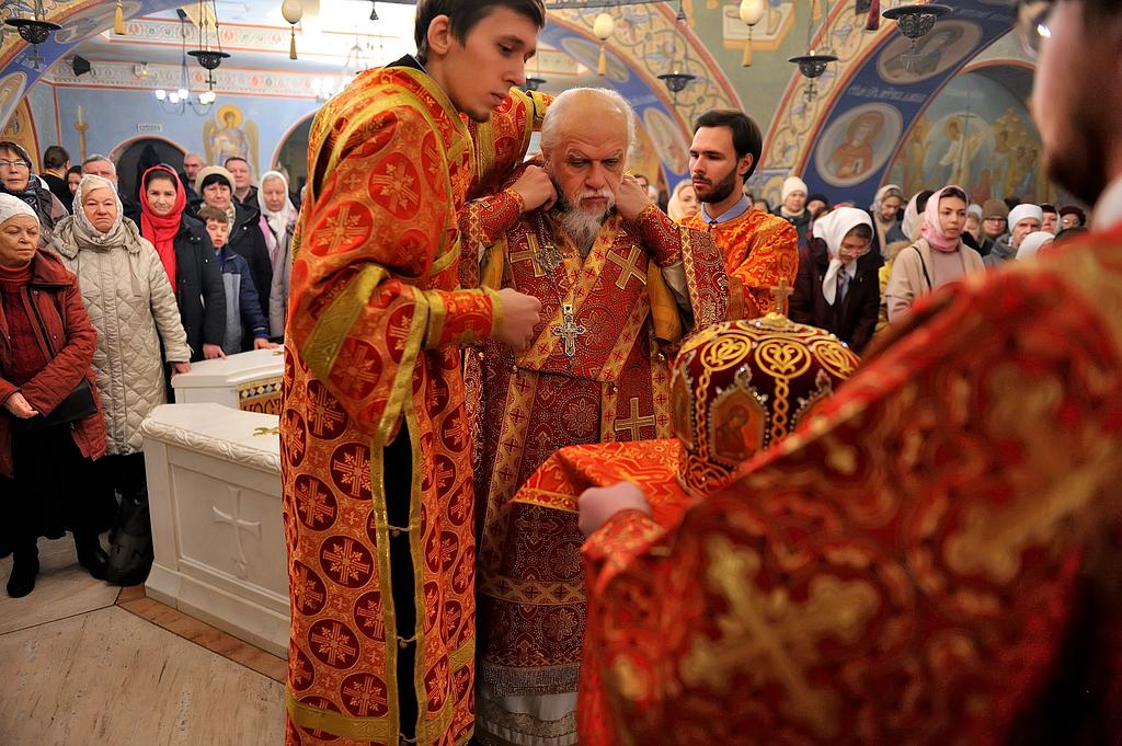 За Божественной Литургией епископу Пантелеимону сослужили: настоятель Покровского храма архимандрит Мелхиседек (Артюхин); сотрудник Синодального отдела по церковной благотворительности и социальному служениюдиакон Игорь Куликов и клирики храма.