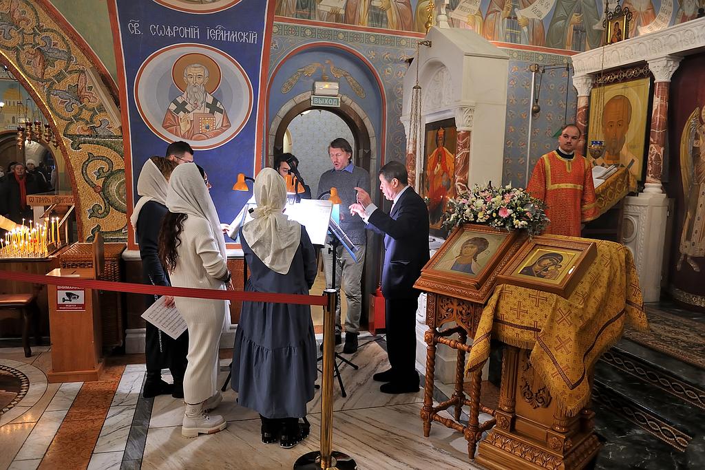 Богослужебные песнопения исполнил праздничный хор Покровского храма под управлением регента Бориса Орлова.