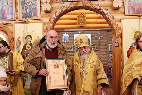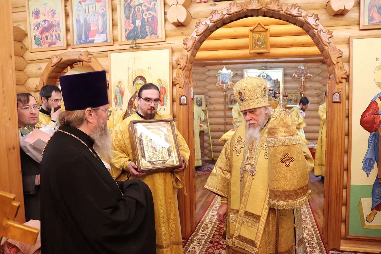 Настоятель храма преподнес от храма в подарок Его Преосвященству икону Казанской Божией Матери