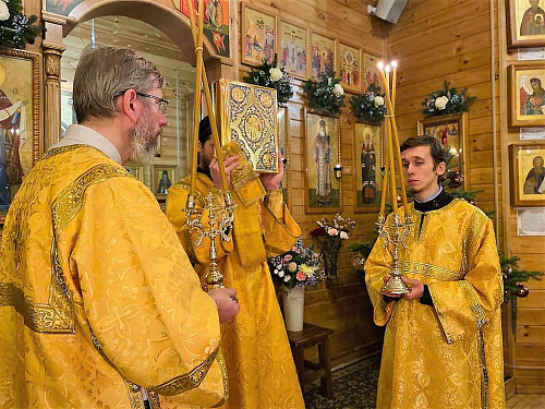 В проповеди после чтения Евангелия викарий Святейшего Патриарха поздравил всех собравшихся с Предпразднством Рождества Христова, поблагодарил настоятеля иерея Иоанна Омелянчука, духовенство и прихожан за теплый прием, за радость совместной молитвы.