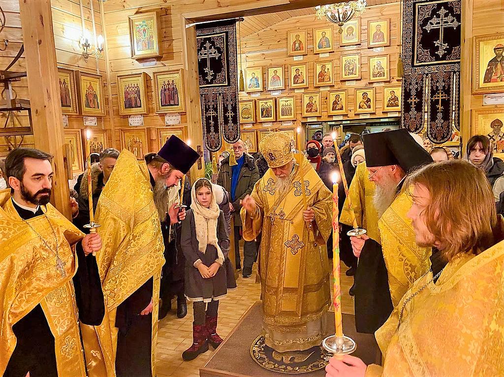 1 января 2022 года, накануне Недели 28-й по Пятидесятнице, перед Рождеством Христовым, святых отец, и дня памяти праведного Иоанна Кронштадтского, чудотворца, в храме святителя Луки, архиепископа Симферопольского и Крымского, в Зюзине, возведенного на месте строительства храма в честь священномученика Ермогена, Патриарха Московского и всея Руси, чудотворца, временно управляющий Юго-Западным викариатством епископ Верейский Пантелеимон совершил Воскресное всенощное бдение.