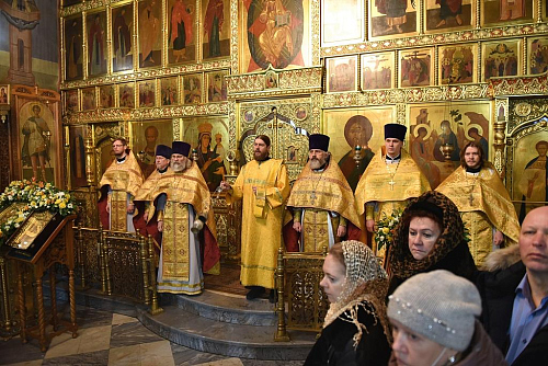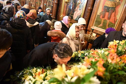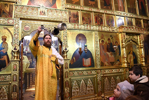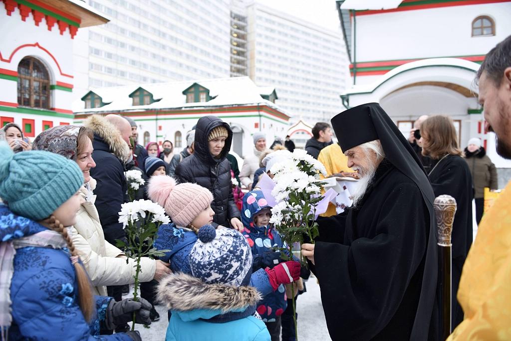 На сугубой ектении были также возглашены прошения о заключенных, поскольку в день памяти святителя Николая Чудотворца в Москве, по благословению Святейшего Патриарха Московского и всея Руси Кирилла, проводится благотворительная акция «День милосердия и сострадания ко всем во узах темничных находящимся».
