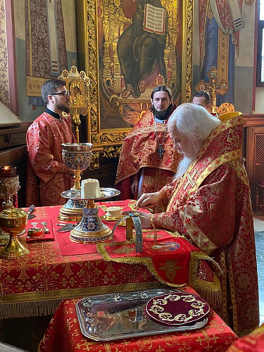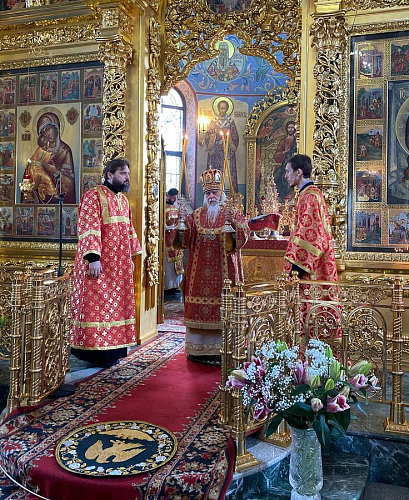 7 мая 2022 года, в субботу второй недели по Пасхе, епископ ВерейскийПантелеимон, временно управляющий Юго-Западным викариатством г. Москвы, викарий Святейшего Патриарха Московского и всея Руси, возглавил Божественную Литургию в храме преподобной Евфросинии, великой княгини Московской, Патриаршем подворье в Котловке.
