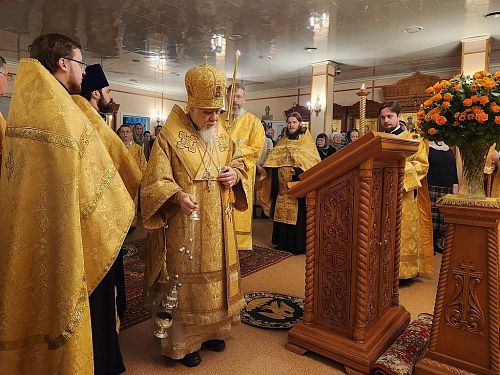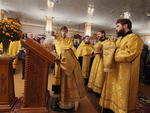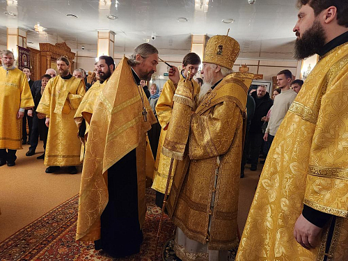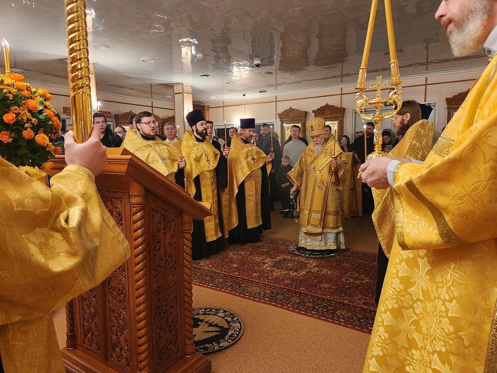 После чтения Евангелия епископ Пантелеимонобратился к духовенству и прихожанам спроповедью, призывая всех верующих к чтению Священного Писания и деятельному служению в Церкви. Владыка говорил и о том, как важно для каждого из нас продолжать своё движение ко Христу, помня о той великой радости, к которой все мы призваны, и не пугаться встающих перед нами на этом пути трудностей, ибо они необходимы каждому человеку и даются свыше для совершенствования в терпении, смирении, стойкости и молитве.