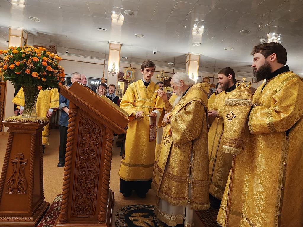 Сослужили епископу Пантелеимону настоятель и клирики храма: протоиерей Андрей Алексеев, иерей Анатолий Эдельберг, иерей Давид Осипов и диакон Илия Кадин. Помолиться на архиерейской службе собрались прихожане и сотрудники подворья, трудящиеся в различных подразделениях культурно-образовательного центра «Восход».