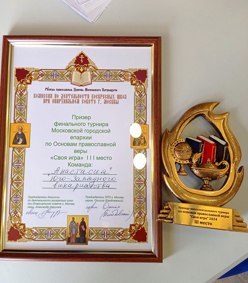 31 марта 2024 года по благословению и.о. настоятеля храма Великомученицы Анастасии Узорешительницы в Тёплом Стане иерея Димитрия Борсука команда Воскресной школы «Анастасия» приняла участие в финальном турнире Московской городской епархии по основам православной веры «Своя игра».