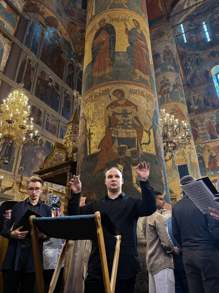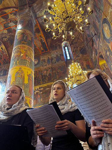 Песнопения Патриаршего богослужения исполнил хор храма Живоначальной Троицы в Конькове под управлением регента Александра Оводова.
