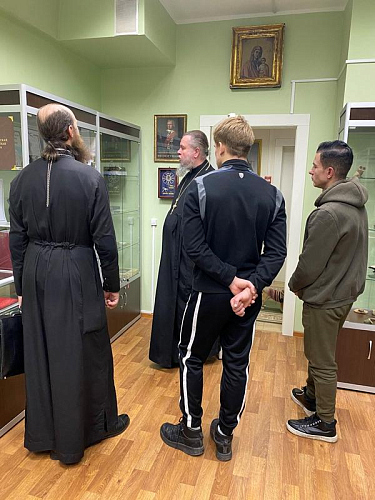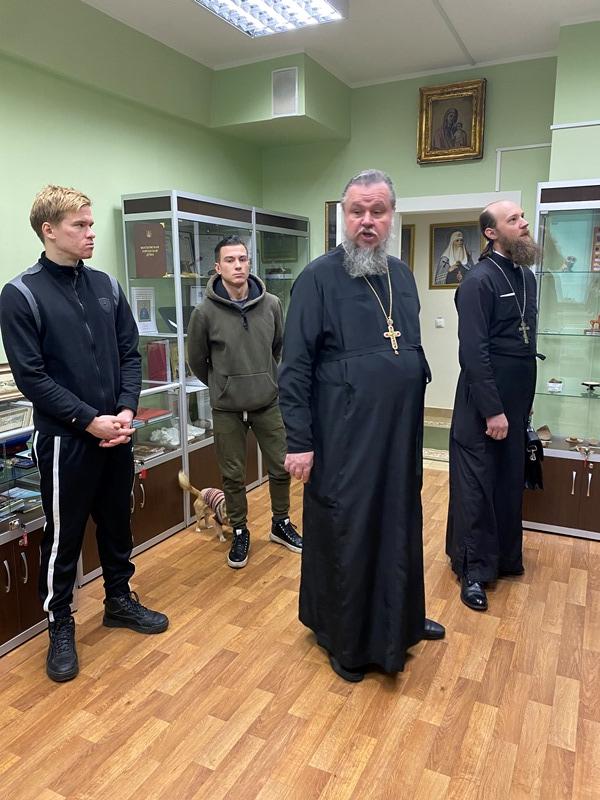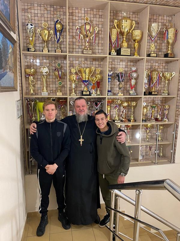 7 декабря 2022 года храм святого праведного воина Феодора Ушакова в Южном Бутове посетила группа молодежи, спортсмены-футболисты команды Подворья по мини-футболу "Адмирал". Команда посетила храм со своим капитанов Сергеем Маринатом.