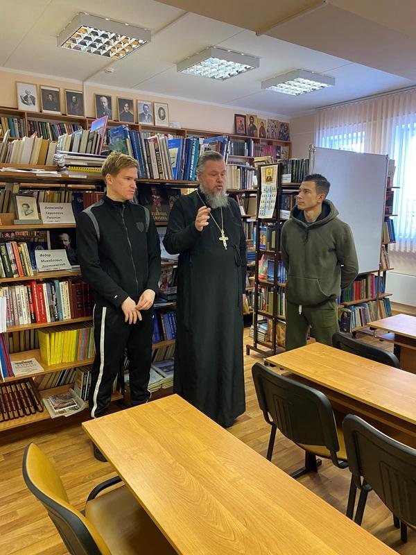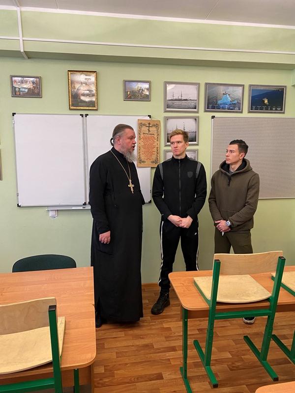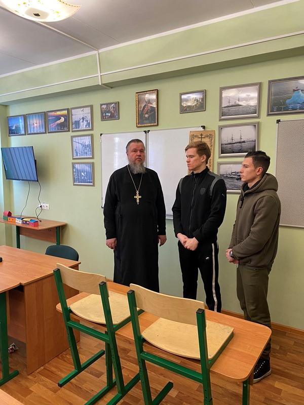 Настоятель подарил ребятам по иконке Святого адмирала и книжке о нем.