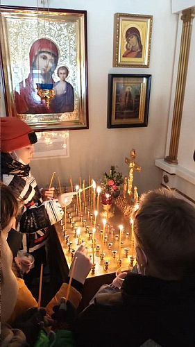 Она уделила внимание жизнеописание номомученников и исповедников Российских, которые пострадали во времена гонений на Церковь, рассказала об устройстве храма и приближающемся празднике Рождества Христова, а также рассказала краткое житие святого покровителя храма священномученика Василия, протоиерея Московского. Во время экскурсии Наталья Александровна ответила намногочисленные вопросы детей. В храме ребята поставили свечи с молитвой и просьбой о своих нуждах.