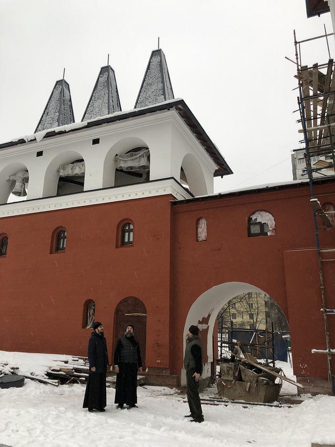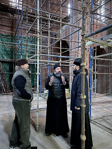 После богослужения и.о. председателя ФХУ в сопровождении настоятеля и представителя генподрядной организации ООО «ГенСтройТрест» осмотрели ход работ.