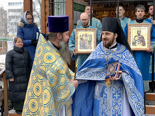 Иерей Иоанн Омелянчук поздравил всех прихожан со знаменательным событием, поблагодарил иеромонаха Ермогена за совместное богослужение и пожелал ему сил и помощи Божией в трудах, связанных с храмостроительством в рамках Патриаршей программы.
