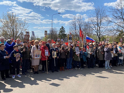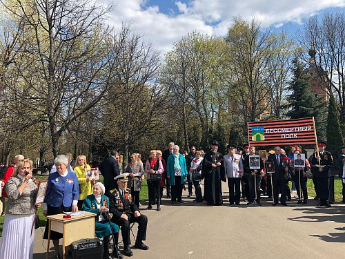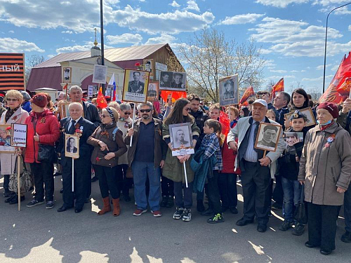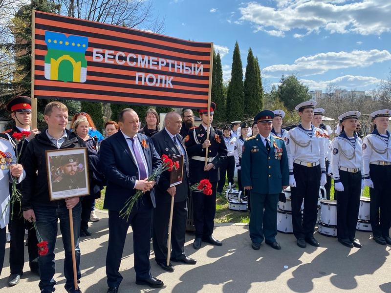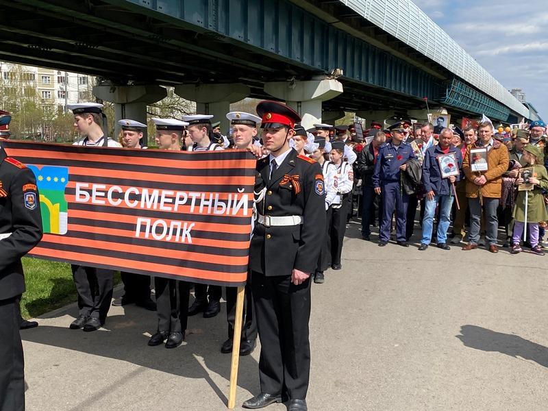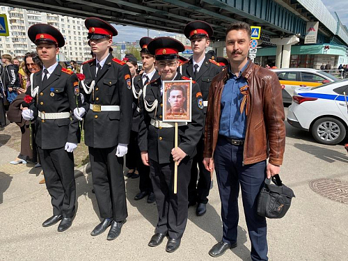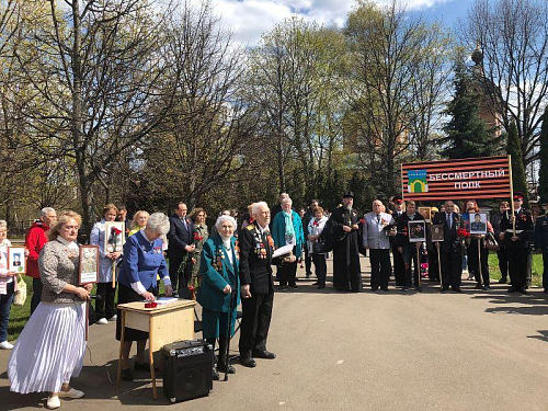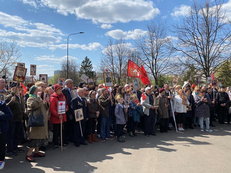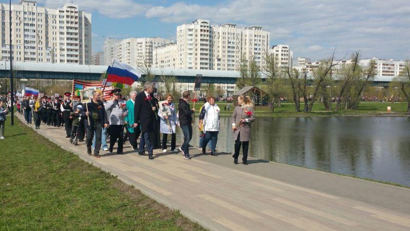 В единой колонне шли депутат Мосгордумы Гусева Людмила Ивановна с портретом своего отца-героя, глава Управы района Южное Бутово Мурад Азадович Бекниязов со своим отцом-ветераном, Глава Муниципального образования Южное Бутово Голубцов Павел Викторович, депутаты Муниципального совета района Южное Бутово, директора и педагоги школ района, настоятель храма святого праведного воина Феодора Ушакова в Южном Бутове игумен Дамиан (Залетов) и другие.