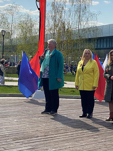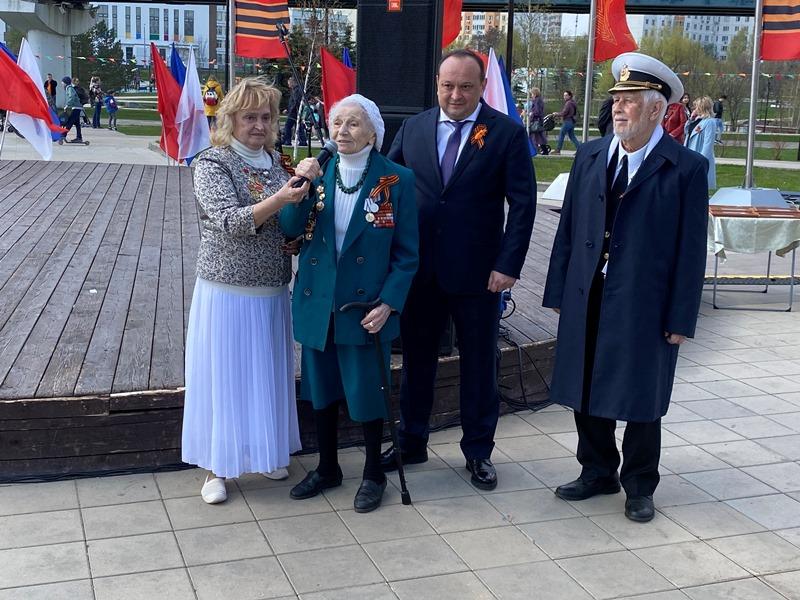 Перед концертом прошла официальная часть, на которой депутаты Муниципального совета вручили самым активным жителям района почетные грамоты и благодарственные письма. От лица жителей района с праздником Победы ветеранов Валентину Владимировну и Рудольфа Леонидовича тепло поздравил Глава Управы Мурад Азадович Бекниязов, который подарил им букеты цветов и ценные подарки.