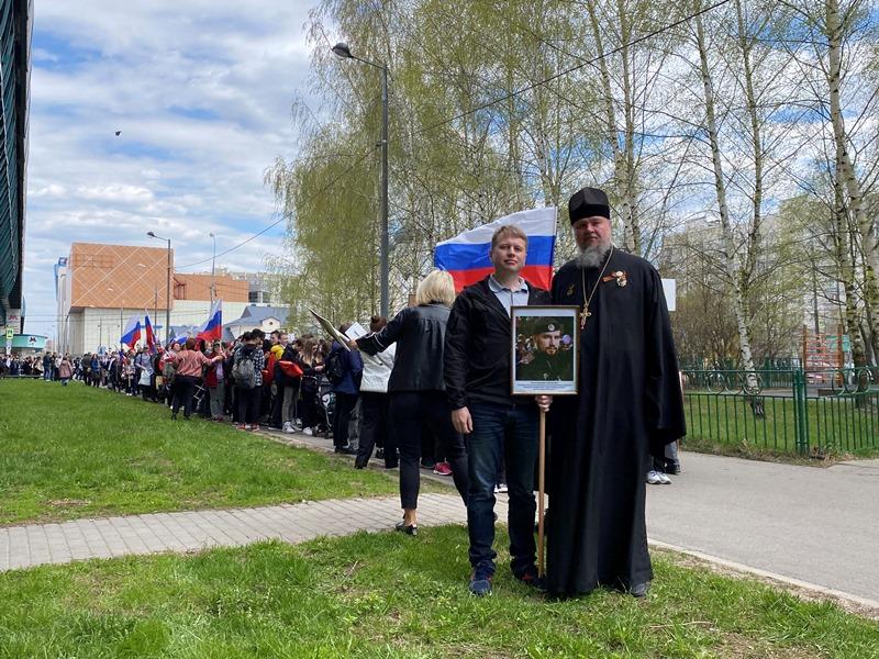 В шествии шли дети, их родители и директор Воскресной школы храма Святого адмирала. Они, как и все, несли портреты своих предков, участников Великой Отечественной войны.