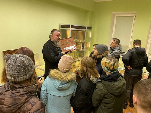 Впервые такая большая группа школьников посетила церковно-археологический музей Подворья. Настоятель подробно рассказал ребятам об экспонатах и призвал бережно хранить историю своей жизни и своей семьи.