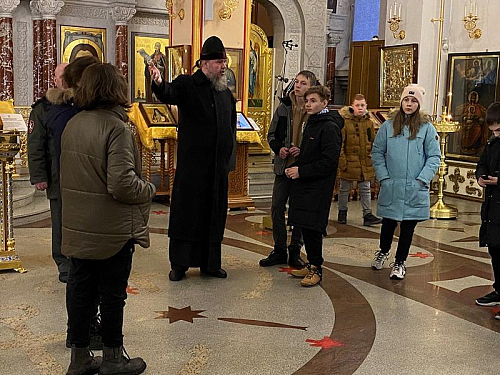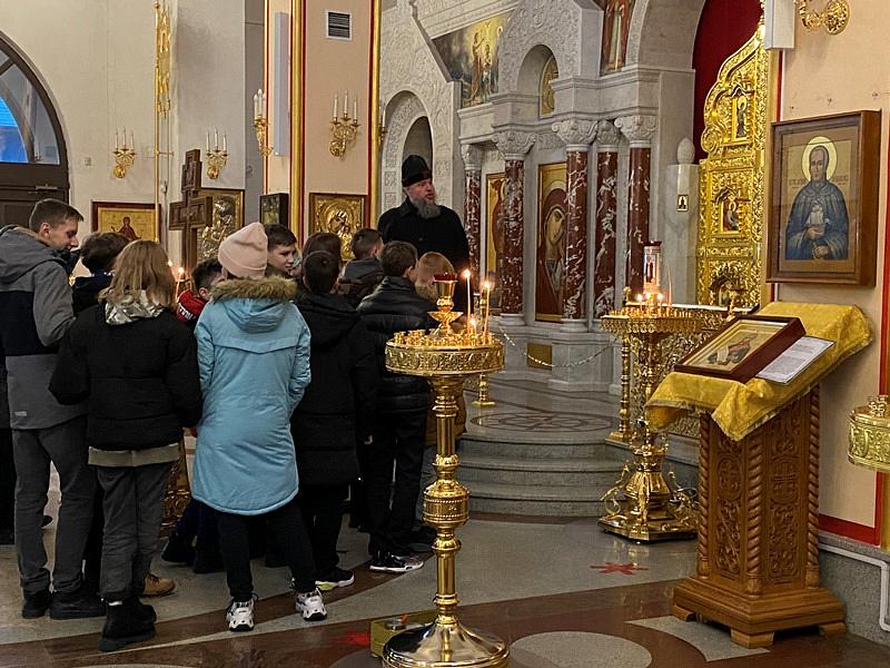 Внутри храма игумен Дамиан рассказал школьникам о тех событиях жизни Небесного покровителя храма - святого адмирала Феодора Ушакова и других святых, которые стали примерами добродетели, преданности, смелости и скромности. Многое из этого ребята уже изучали на уроках Основ Православной культуры, а теперь смогли на практике усвоить и осмыслить.