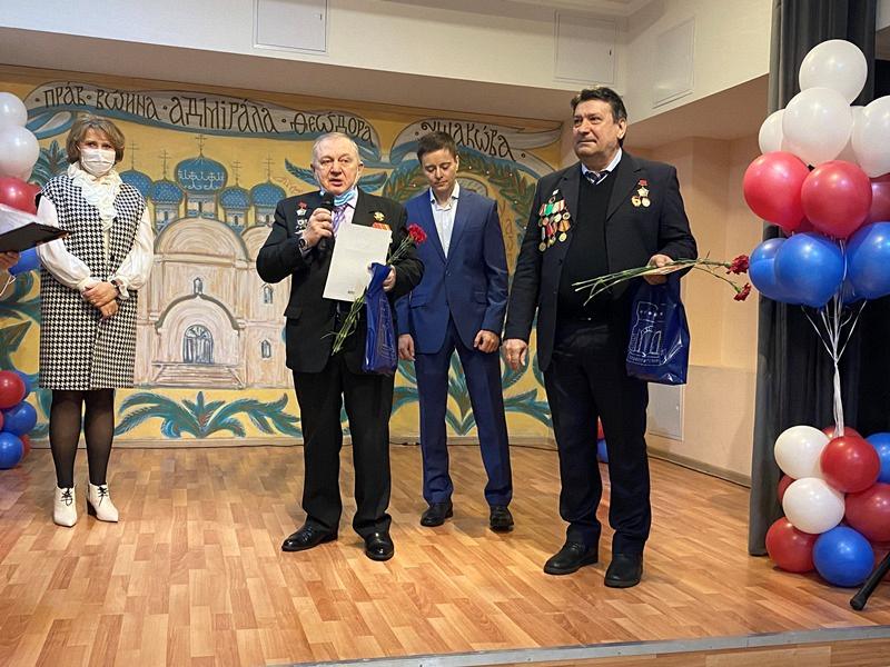 В течение концертной программы перед собравшимися выступали Людмила Ивановна Гусева, Рыбаченко Александр Сергеевич, Голубцов Павел Викторович, Лебедева Наталья Васильевна, Никифорова Елена Вячеславовна. Они вручали ветеранам и воинам-интернационалистам Благодарственные письма, грамоты и подарки.