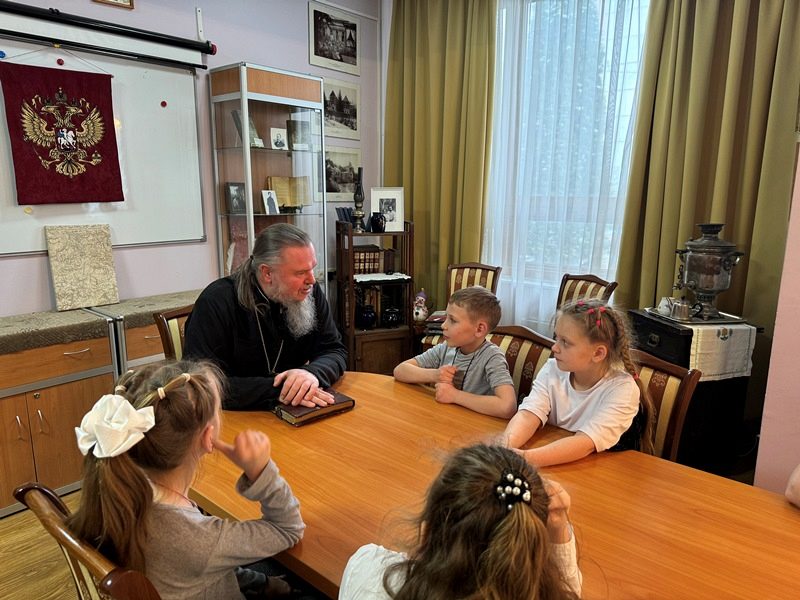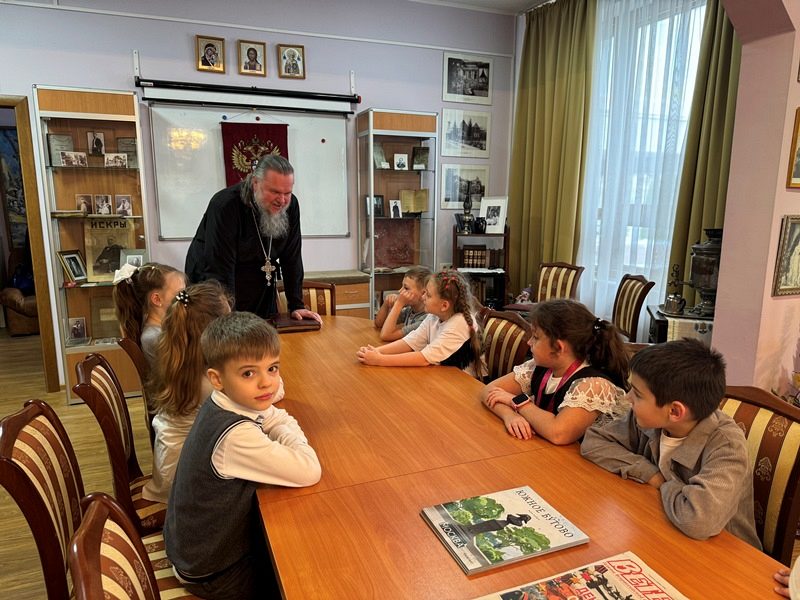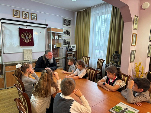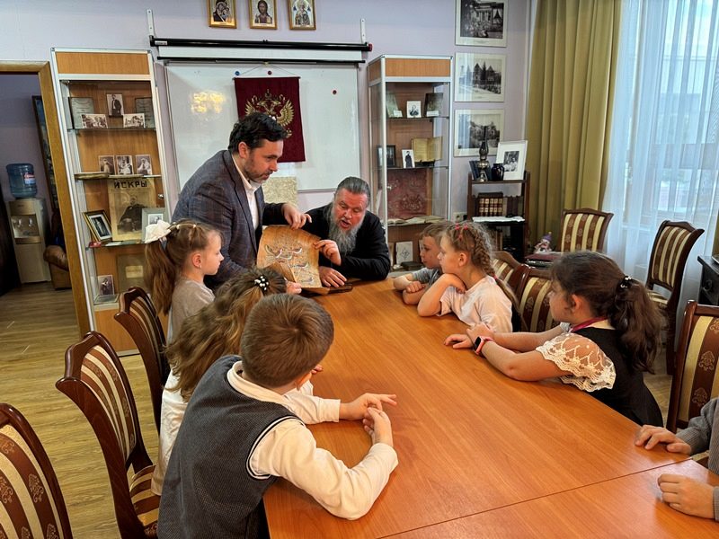 17 марта 2025 года в музейном комплексе ГБОУ "Школа № 1161" г. Москвы настоятель храма святого праведного воина Феодора Ушакова в Южном Бутове игумен Дамиан (Залетов) провел специальное занятие для школьников о книгопечатании и истории книги.