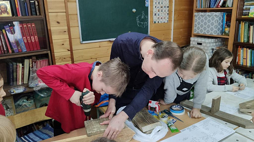 4 апреля мастер-класс по изготовлению скворечников, организованный преподавателями Воскресной школы, прошёл в помещении Воскресной школы храма священномученика Василия. Мастер-класс провёл Александр Шитенков — прихожанин храма.