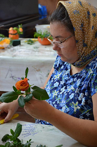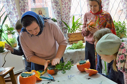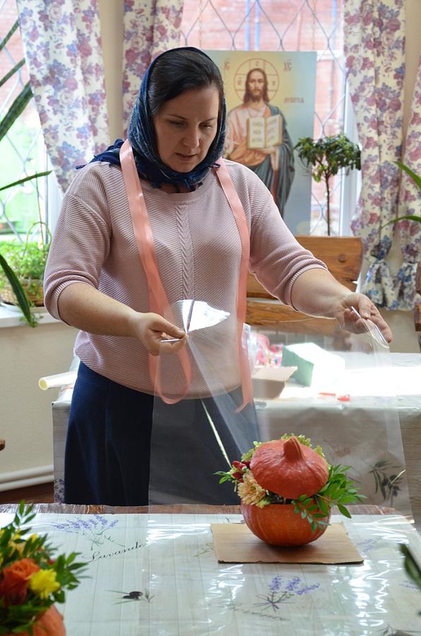 26 сентября в преддверии Дня Учителя в Воскресной школе храма Священномученика Ермогена в Зюзине состоялся мастер-класс по созданию композиции из живых цветов в тыкве. Провела мастер-класс преподаватель по творчеству Бельских Дарья Михайловна.