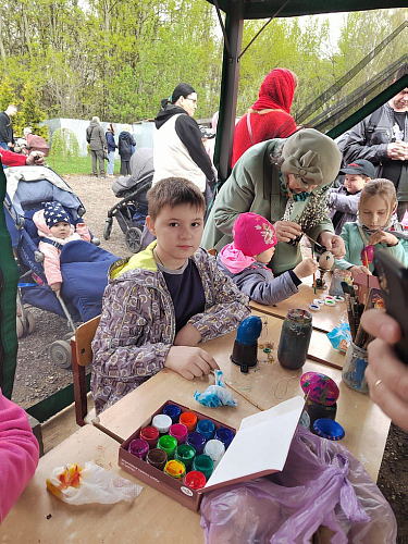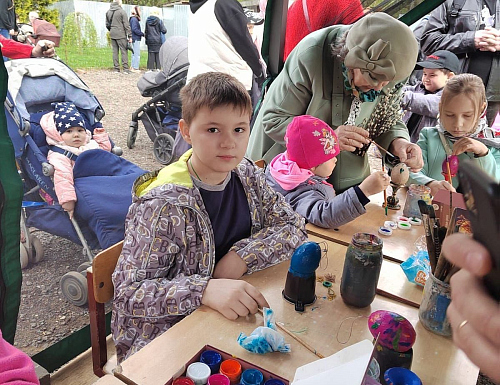 28 апреля 2024 года по благословению и.о. настоятеля храма Великомученицы Анастасии Узорешительницы в Тёплом Стане иерея Димитрия Борсука после службы прошел урок росписи яиц для украшения храма к Пасхе под руководством Александры Евгеньевны Кургановой. Принять участие в росписи могли все желающие.