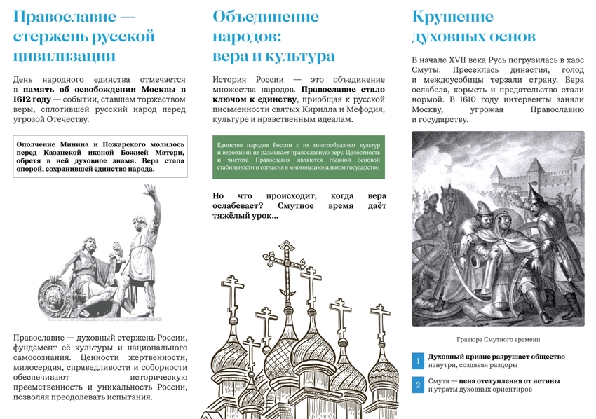 Смутное время стало уроком: когда народ забывает о своих духовных корнях, корысть и разобщённость разрушают общество. Вера и нравственные ценности – это то, что удерживает людей от хаоса и распада.