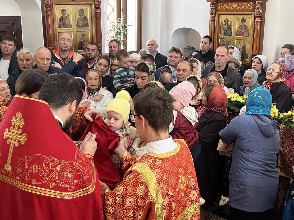 По окончании Литургии был совершен Крестный ход, после которого были возглашены уставные многолетия Святейшему Патриарху Московскому и всея Руси Кириллу, настоятелю, Высокопреосвященному Митрополиту Кишиневскому и всея Молдовы Владимиру, властям и воинству России и всему православному народу.