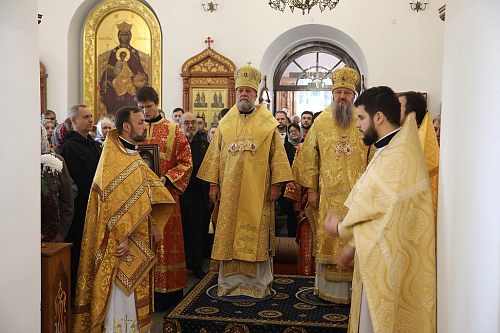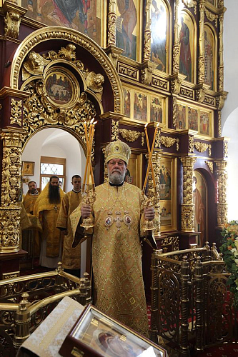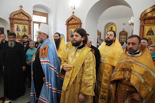 По окончании Литургии митрополит Владимир обратился к присутствующим с архипастырским словом, в котором сердечно поздравил всех с праздником, поблагодарил за поддержку и труды в благоустройстве храмового комплекса и призвал молиться о мире и благодарить Бога за нашу земную жизнь.