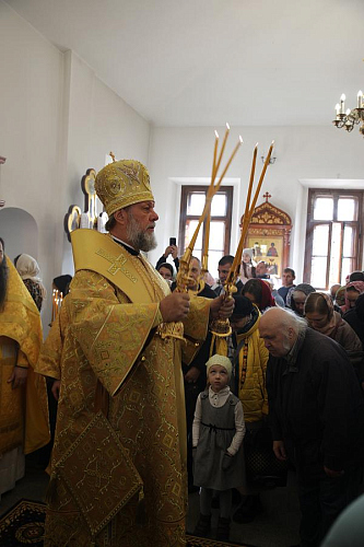 Его Высокопреосвященству сослужили: Архиепископ Тираспольский и Дубоссарский Савва, помощник настоятеля иеромонах Ефрем (Русу) и духовенство храма.