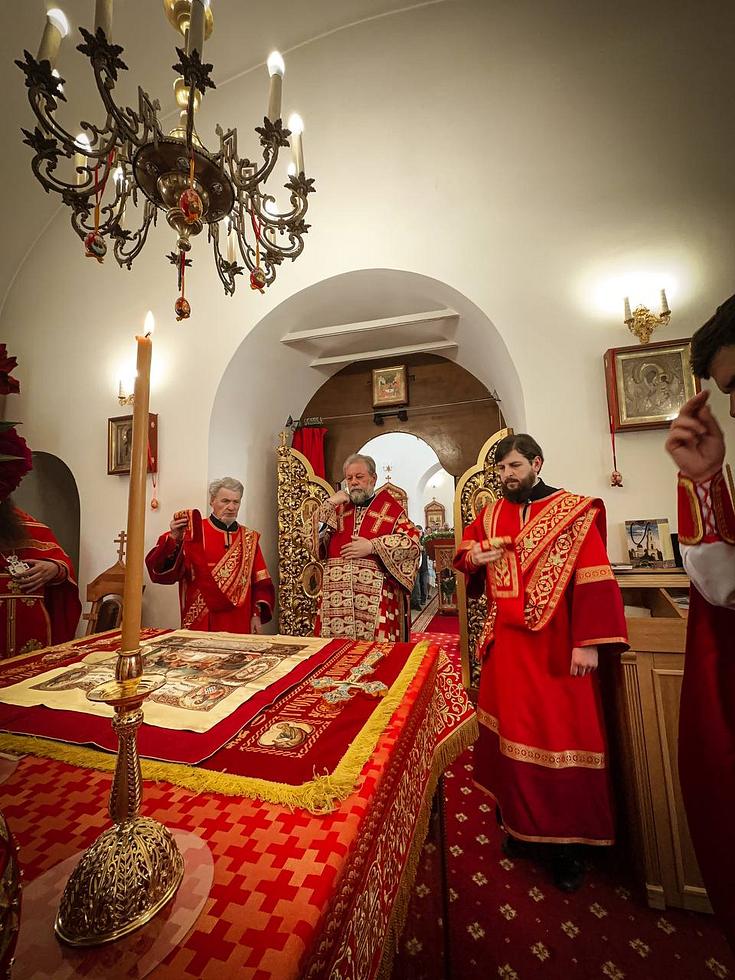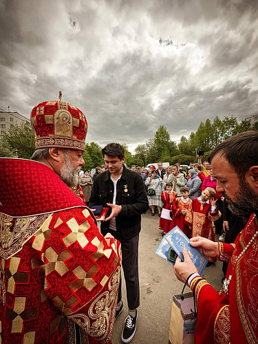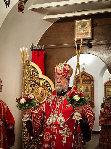 Затем Его Высокопреосвященство обратился к участникам богослужения и прихожанам с архипастырским словом. Он поздравил всех с праздником, поблагодарил прихожан и представителей молдавской диаспоры за совместные молитвы и оказываемую приходу поддержку. Нескольким благотворителям и создателям памятников святым для храмового комплекса были вручены высокие церковные награды и благословенные архиерейские грамоты.