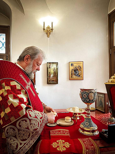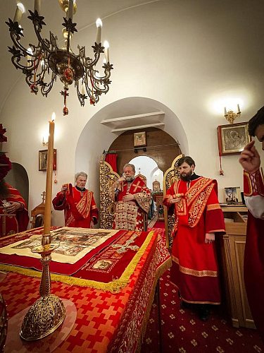 Настоятелю Подворья сослужили: помощник настоятеля иеромонах Ефрем (Русу). протоиерей Виктор Постика, иерей Николай Кошняну, протодиакон Александр Волков и диакон Василий Голбан.