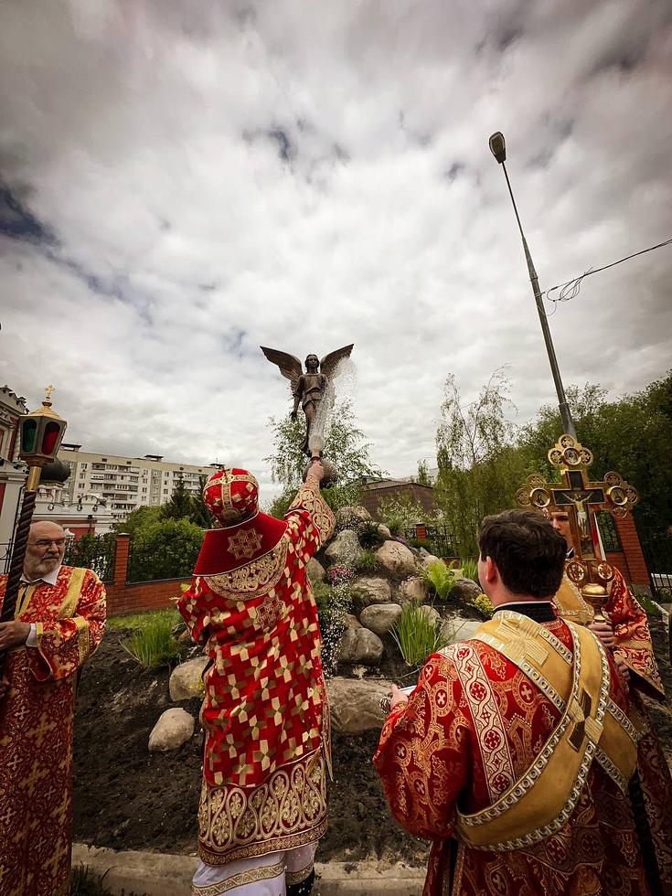 По окончании Божественной Литургии состоялся крестный ход, во время которого митрополит Владимир освятил памятники святителю Петру (Могиле) и Ангелу-Хранителю, установленные накануне.