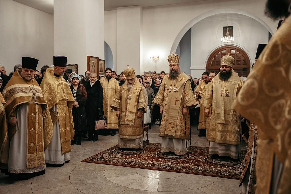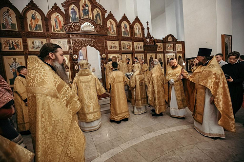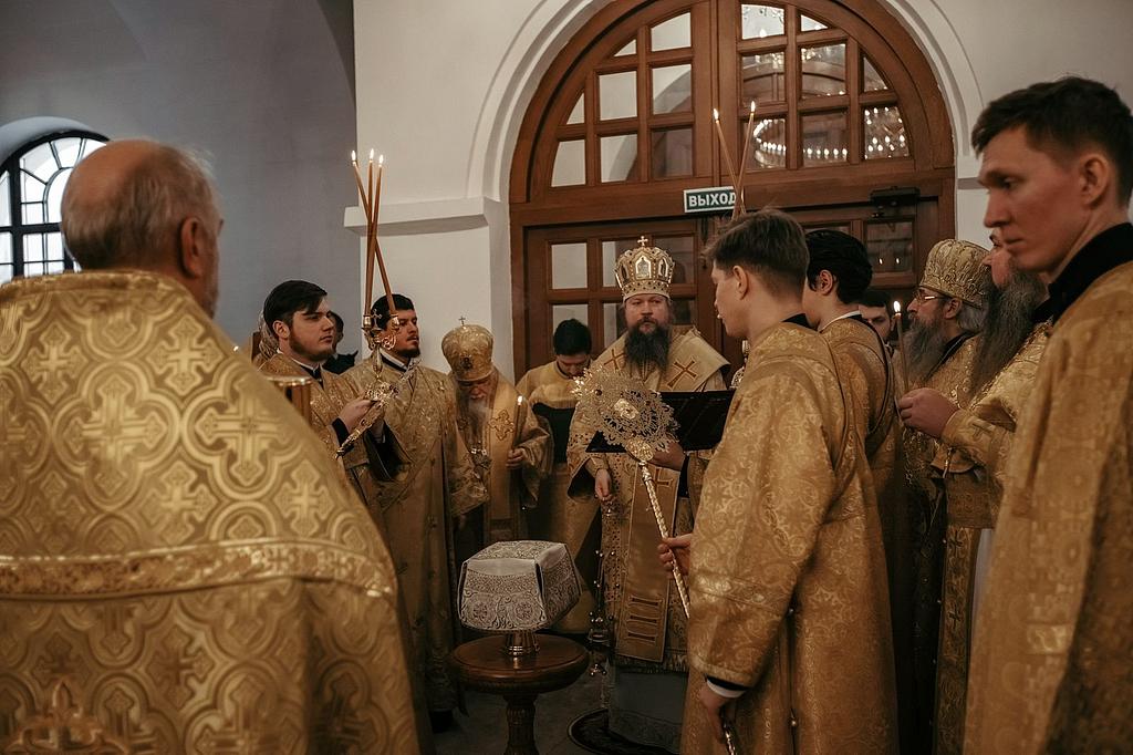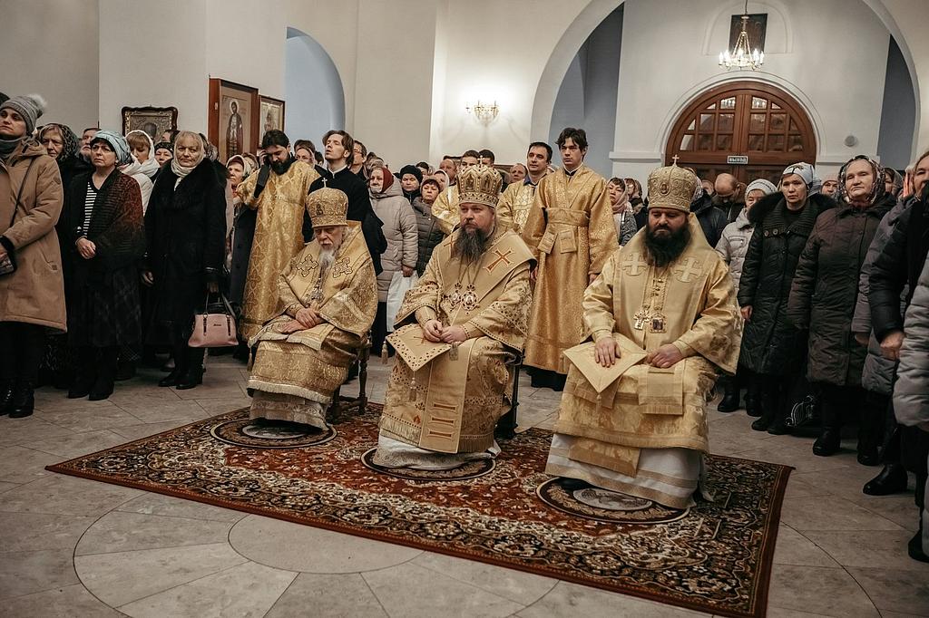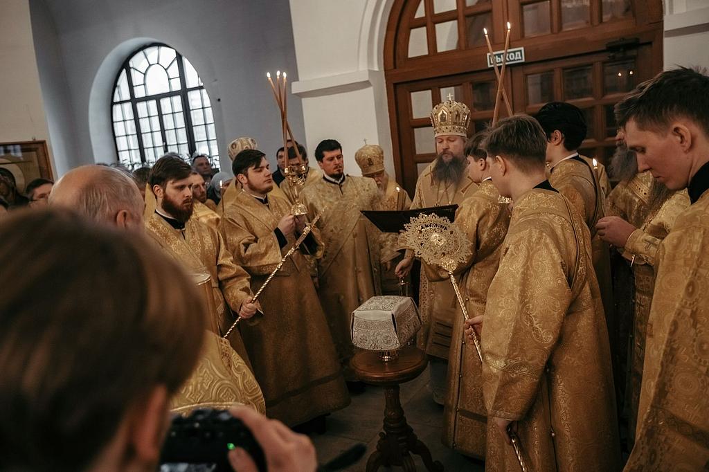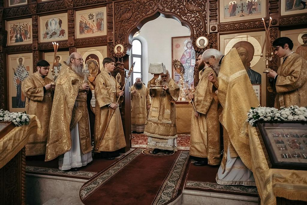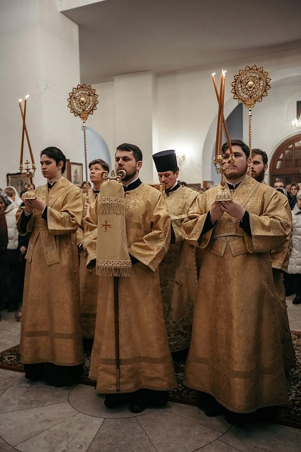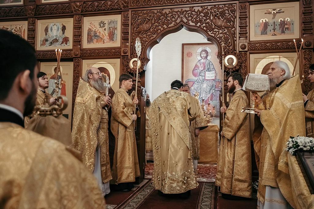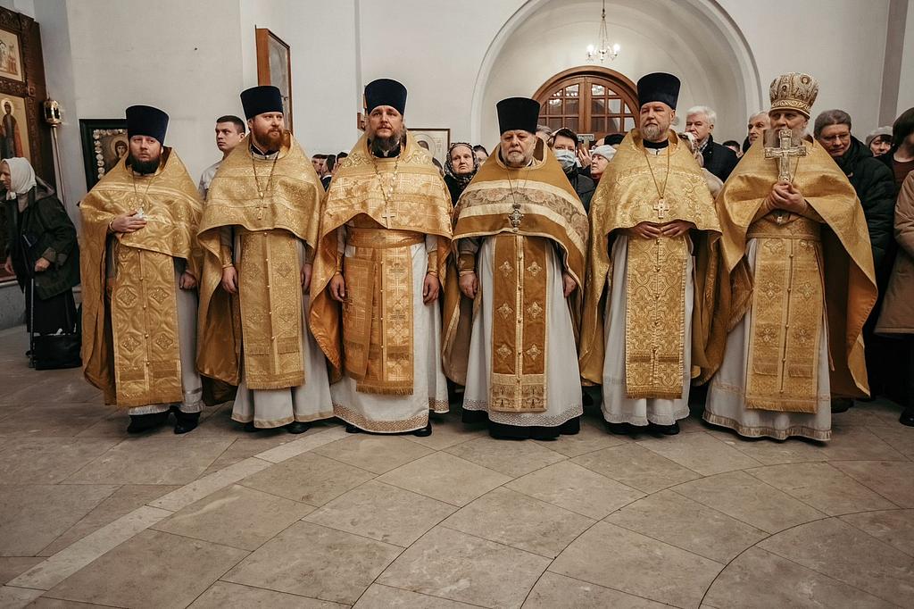 Его Высокопреосвященству сослужили: епископ Верейский Пантелеимон, временный управляющий Юго-Западным викариатством, епископ Наро-Фоминский Парамон, управляющий Северным и Северо-Западным викариатствами, протопресвитер Владимир Диваков, секретарь Святейшего Патриарха по г. Москве, благочинный Центрального округа, настоятель храма «Большое Вознесение», протоиерей Анатолий Кожа, благочинный Параскево-Пятницкого округа, настоятель храма Параскевы Пятницы в Качалове, протоиерей Игорь Федоров, настоятель храма Введения во храм Пресвятой Богородицы в Черневе, духовенство Московской епархии.