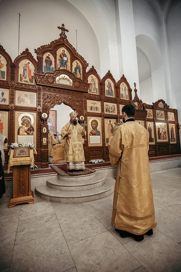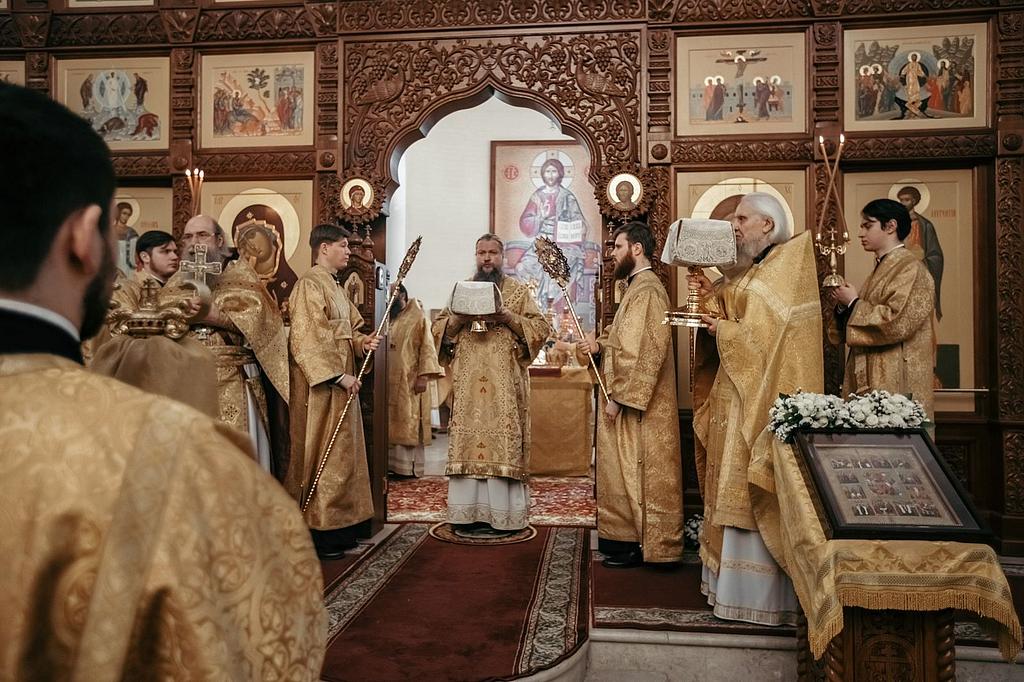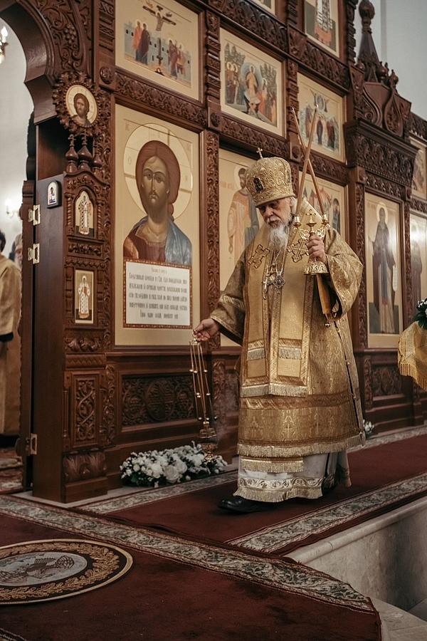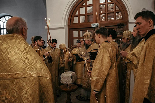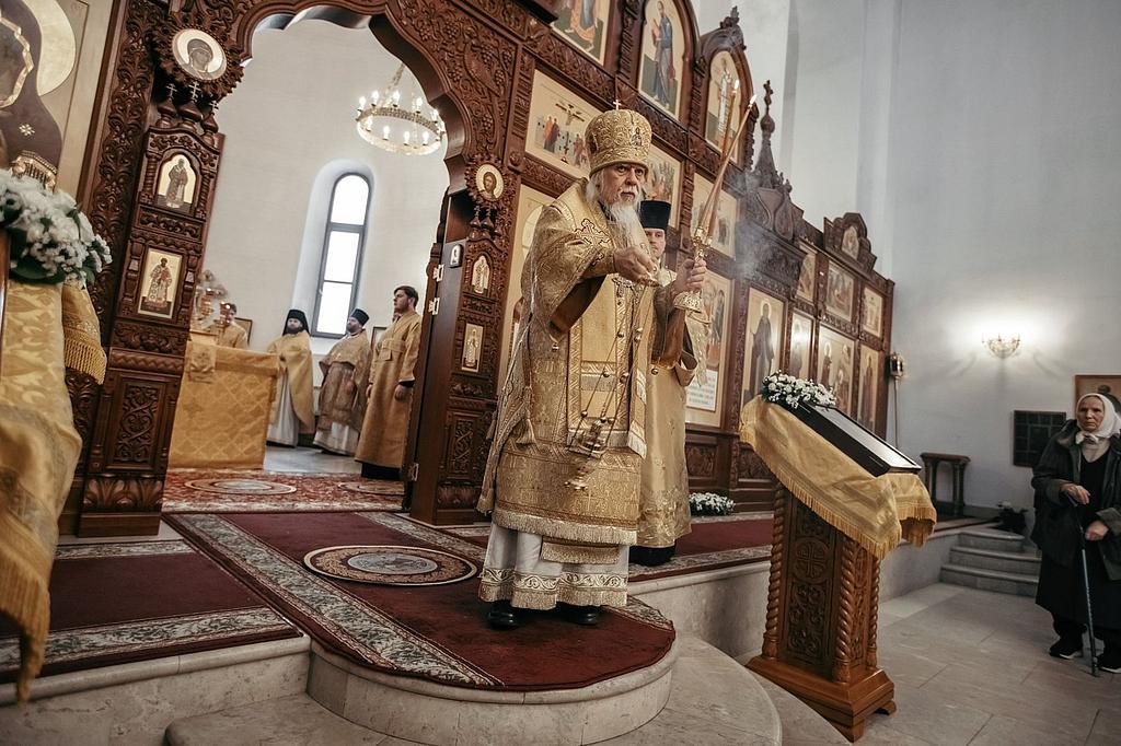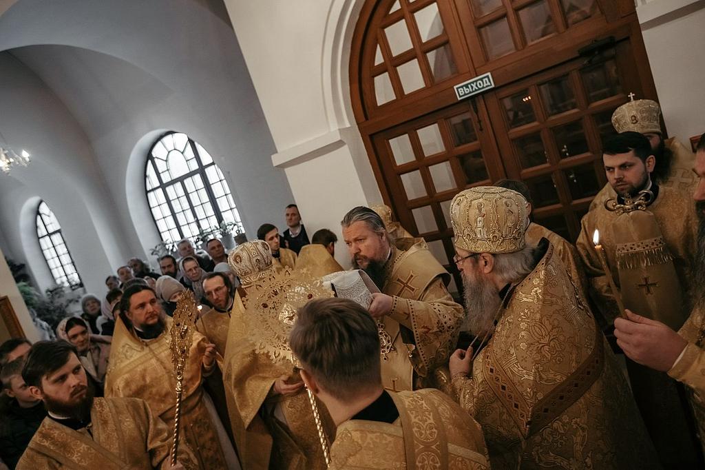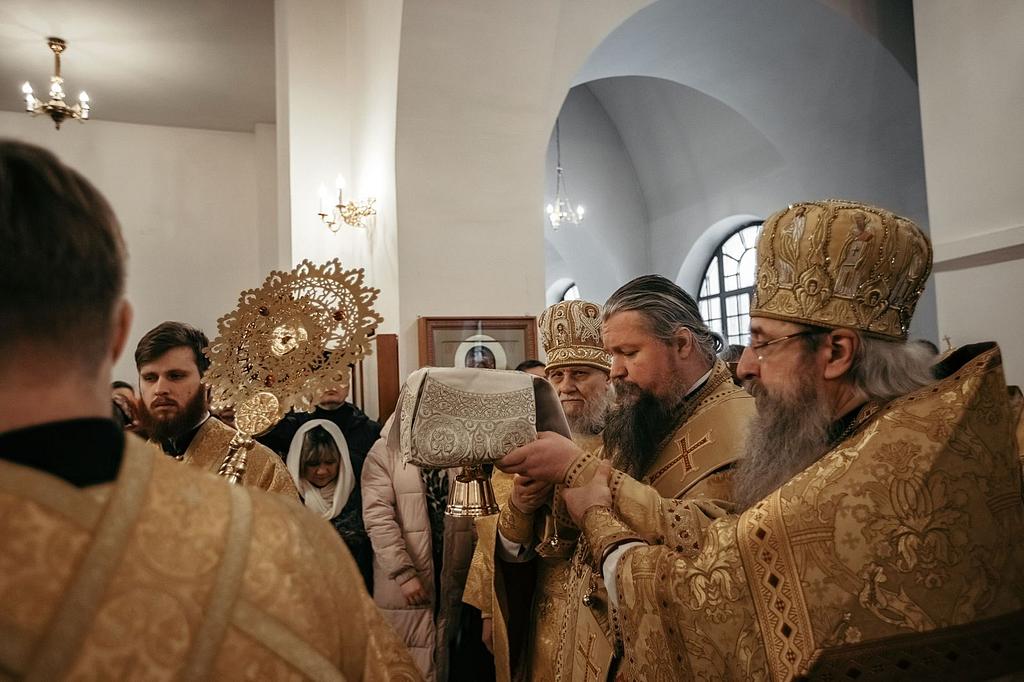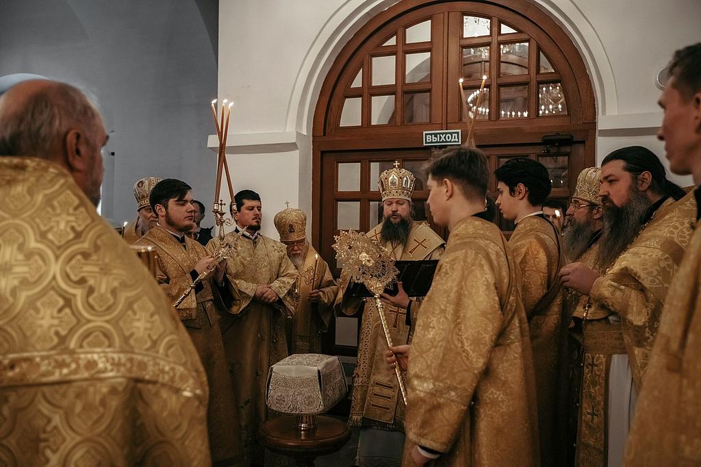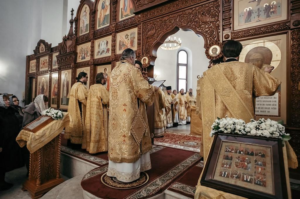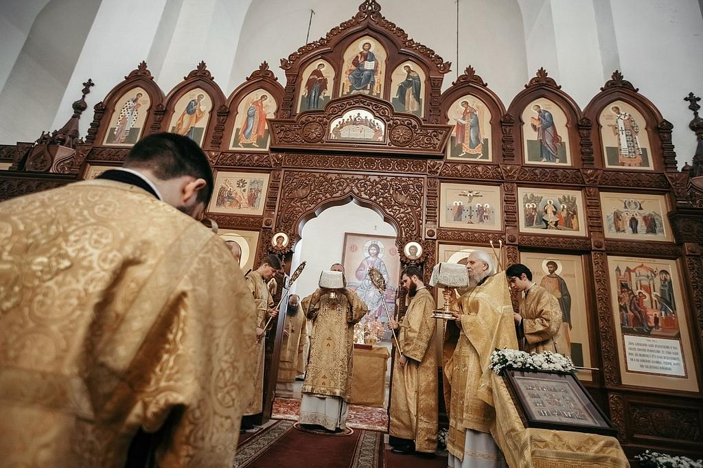 Его Высокопреосвященству сослужили: епископ Верейский Пантелеимон, временный управляющий Юго-Западным викариатством, епископ Наро-Фоминский Парамон, управляющий Северным и Северо-Западным викариатствами, протопресвитер Владимир Диваков, секретарь Святейшего Патриарха по г. Москве, благочинный Центрального округа, настоятель храма «Большое Вознесение», протоиерей Анатолий Кожа, благочинный Параскево-Пятницкого округа, настоятель храма Параскевы Пятницы в Качалове, протоиерей Игорь Федоров, настоятель храма Введения во храм Пресвятой Богородицы в Черневе, духовенство Московской епархии.
