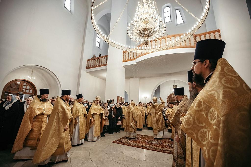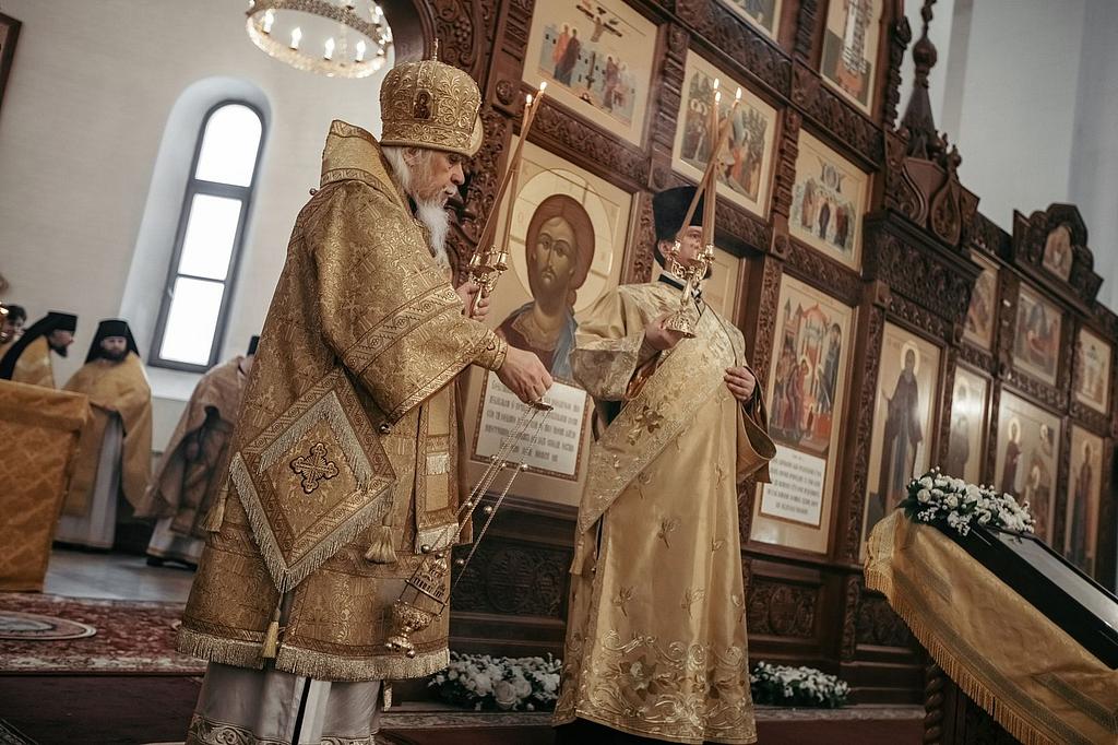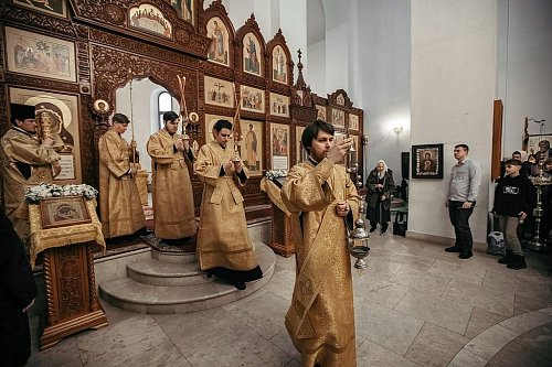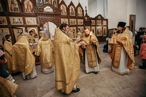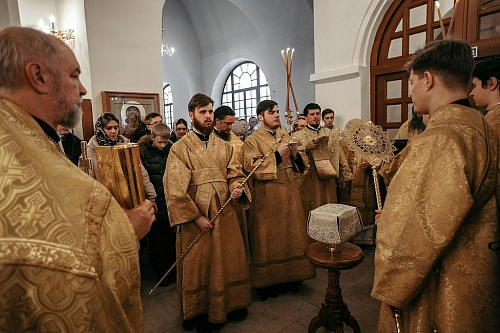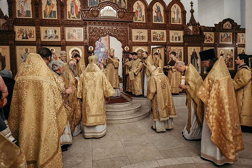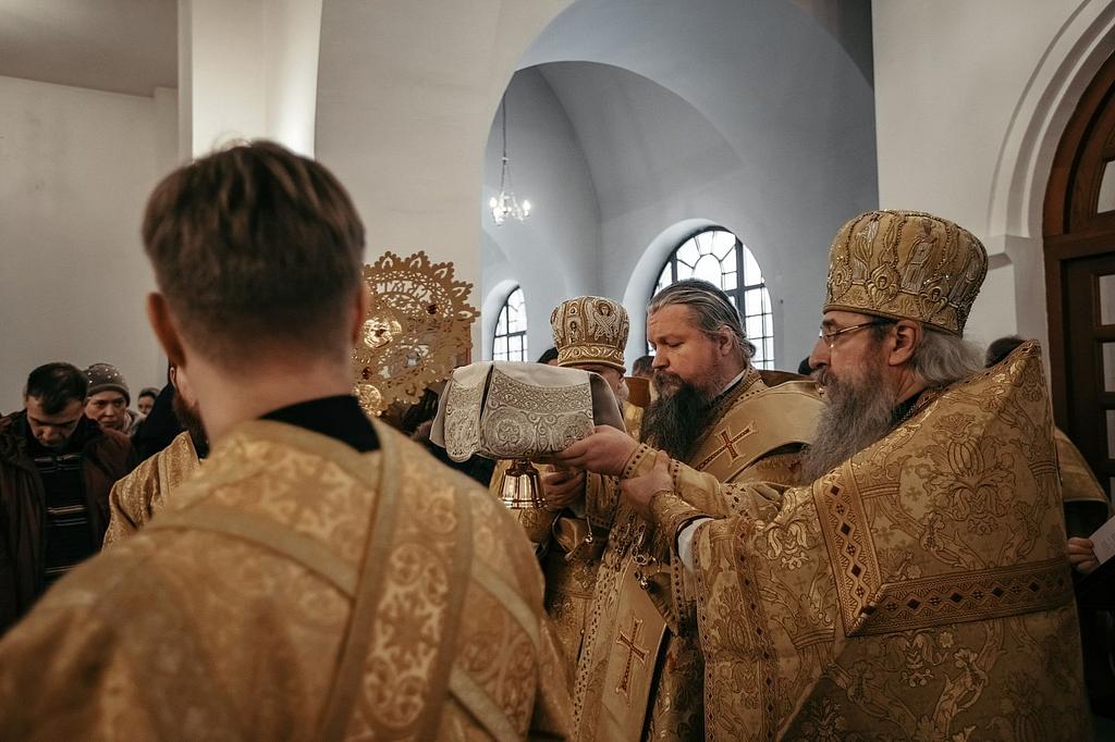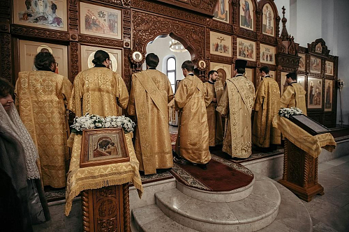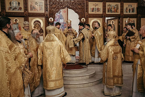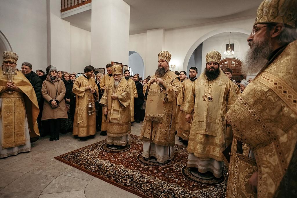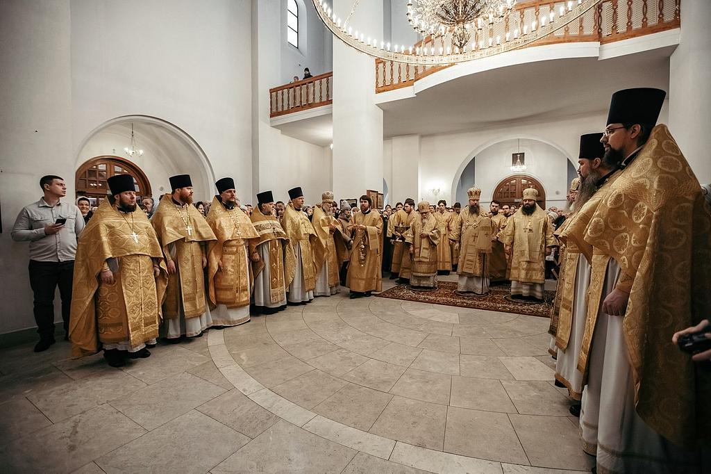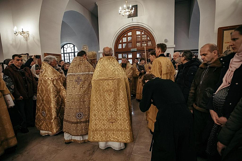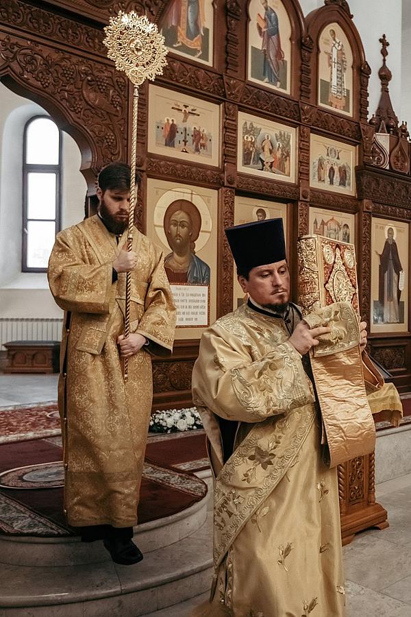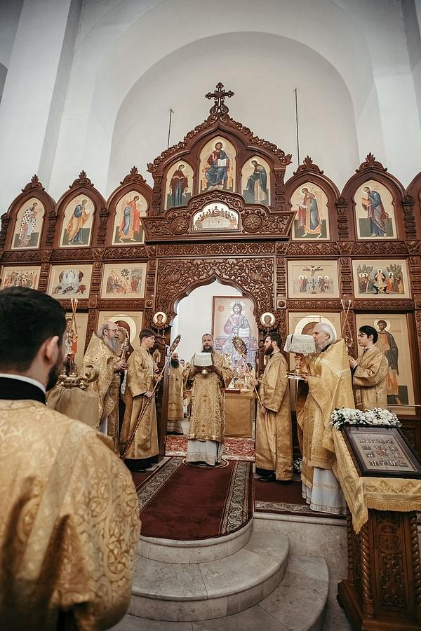 Его Высокопреосвященству сослужили: епископ Верейский Пантелеимон, временный управляющий Юго-Западным викариатством, епископ Наро-Фоминский Парамон, управляющий Северным и Северо-Западным викариатствами, протопресвитер Владимир Диваков, секретарь Святейшего Патриарха по г. Москве, благочинный Центрального округа, настоятель храма «Большое Вознесение», протоиерей Анатолий Кожа, благочинный Параскево-Пятницкого округа, настоятель храма Параскевы Пятницы в Качалове, протоиерей Игорь Федоров, настоятель храма Введения во храм Пресвятой Богородицы в Черневе, духовенство Московской епархии.