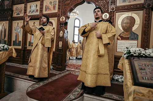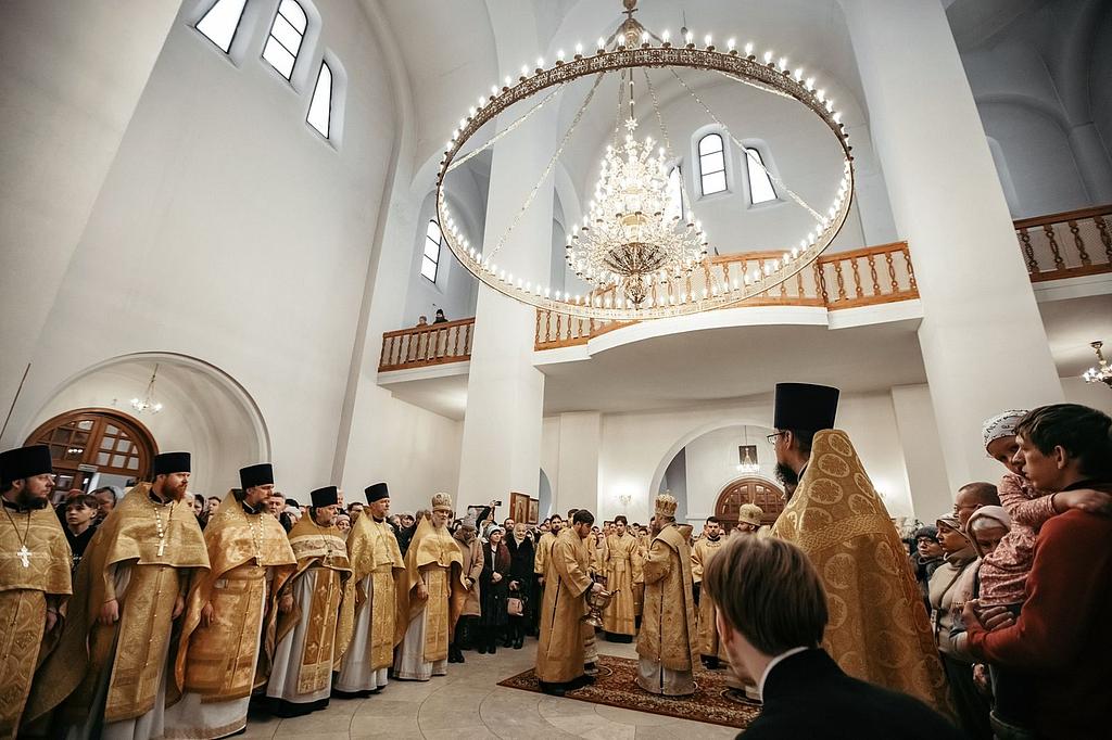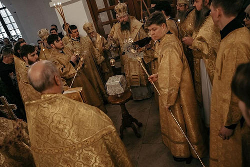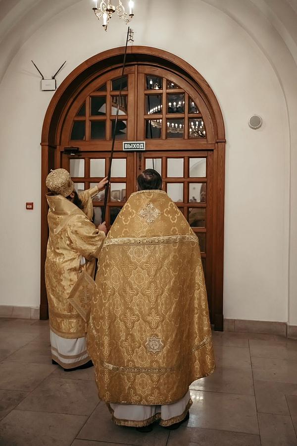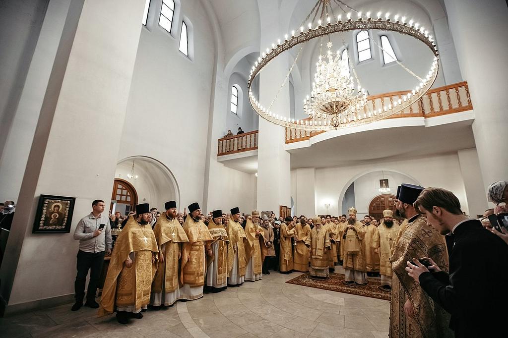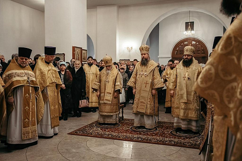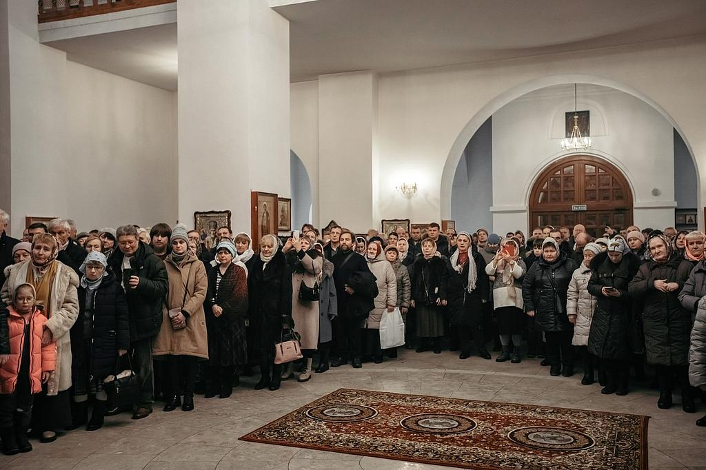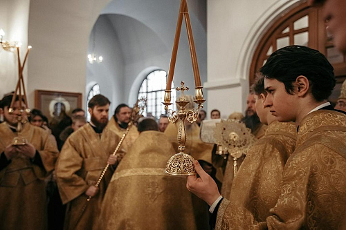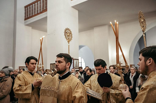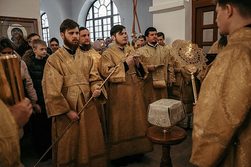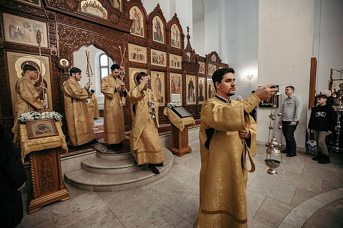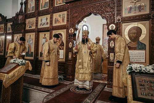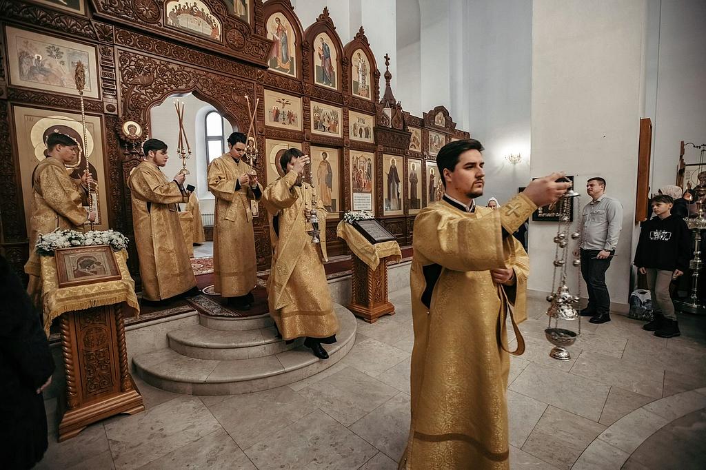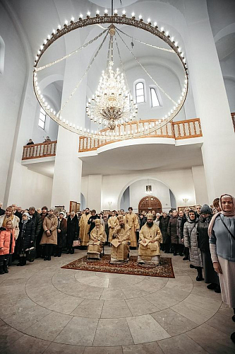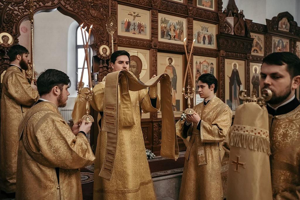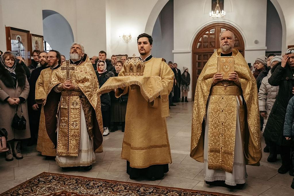 Его Высокопреосвященству сослужили: епископ Верейский Пантелеимон, временный управляющий Юго-Западным викариатством, епископ Наро-Фоминский Парамон, управляющий Северным и Северо-Западным викариатствами, протопресвитер Владимир Диваков, секретарь Святейшего Патриарха по г. Москве, благочинный Центрального округа, настоятель храма «Большое Вознесение», протоиерей Анатолий Кожа, благочинный Параскево-Пятницкого округа, настоятель храма Параскевы Пятницы в Качалове, протоиерей Игорь Федоров, настоятель храма Введения во храм Пресвятой Богородицы в Черневе, духовенство Московской епархии.