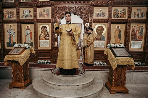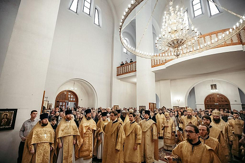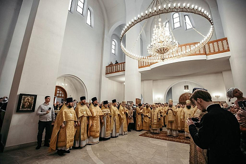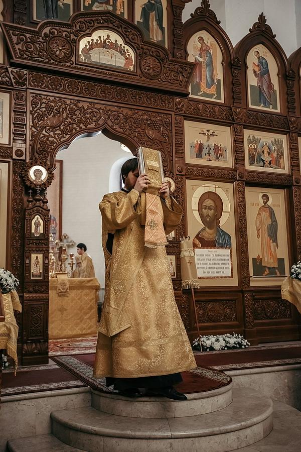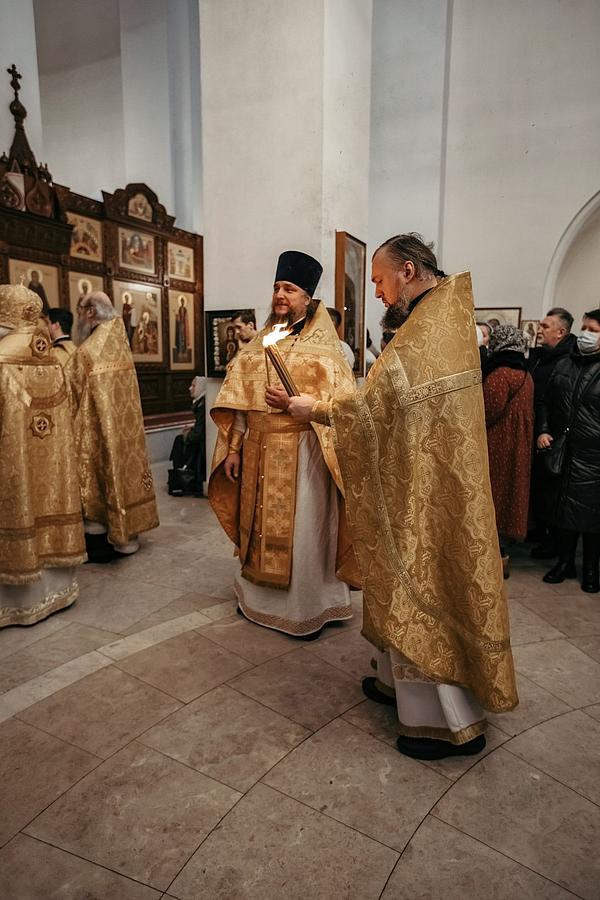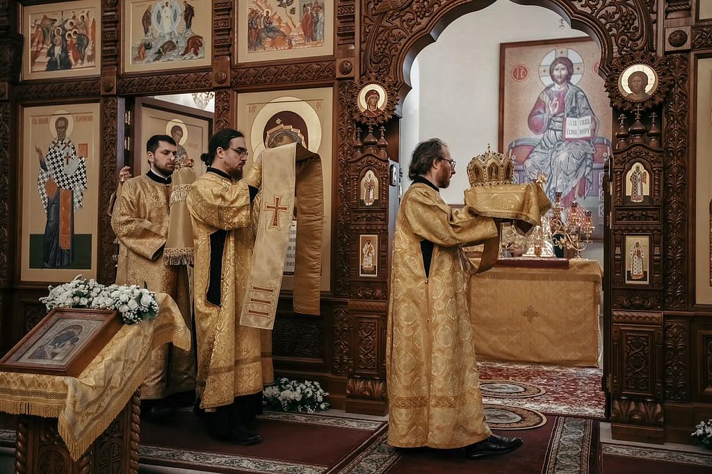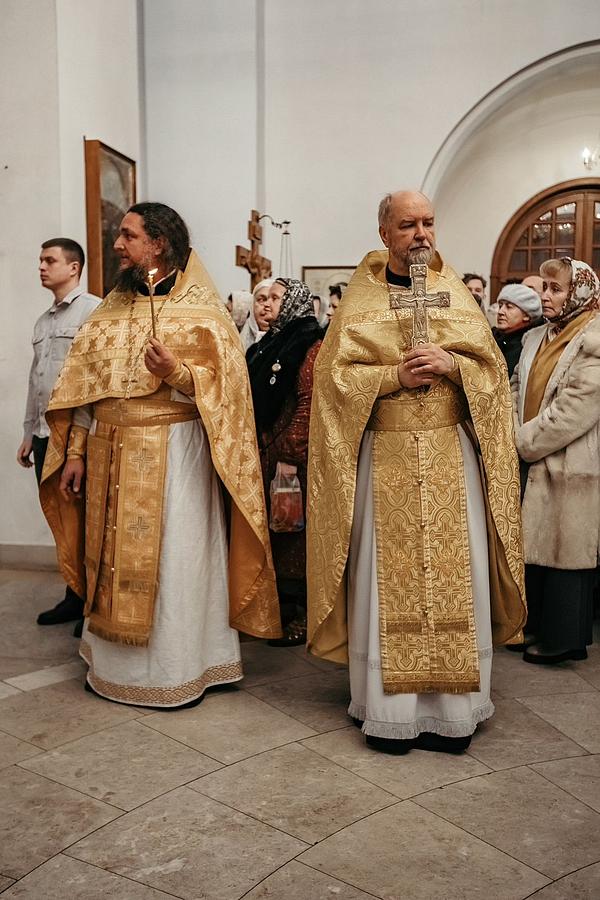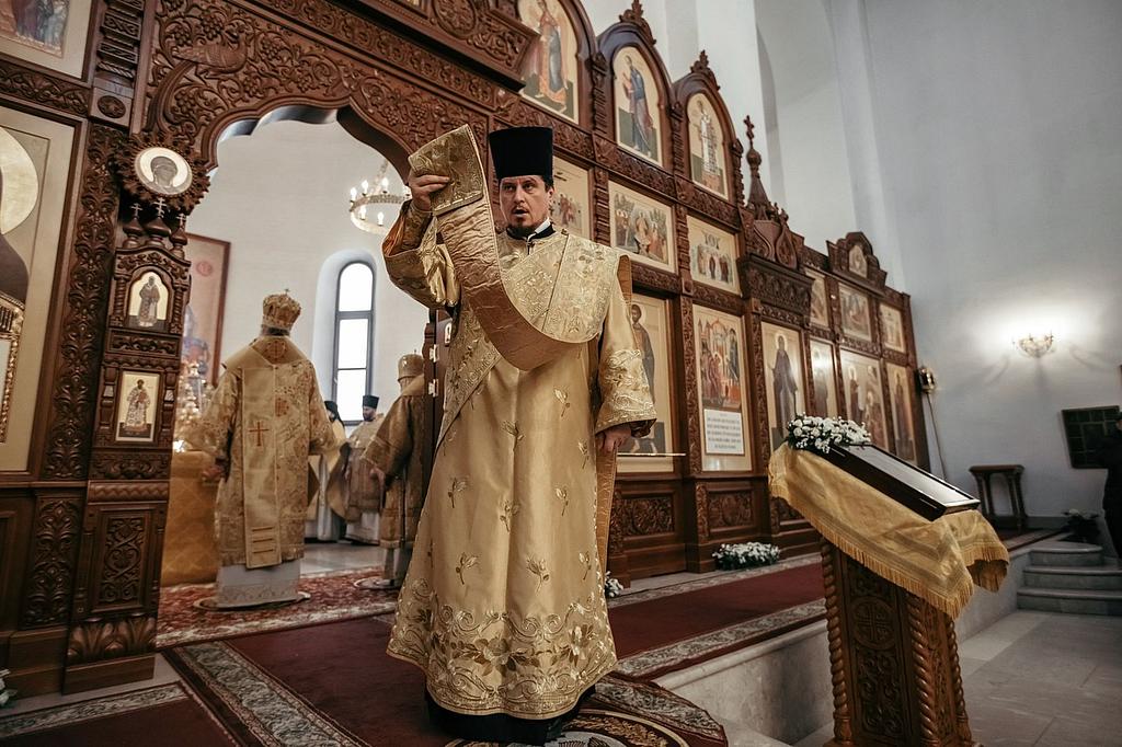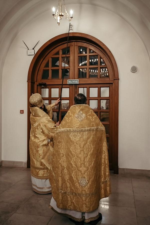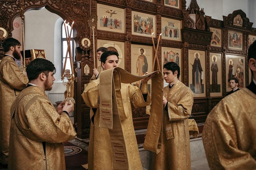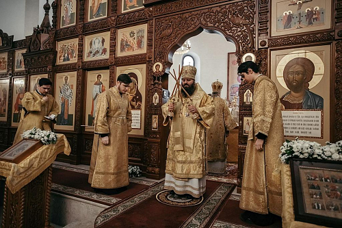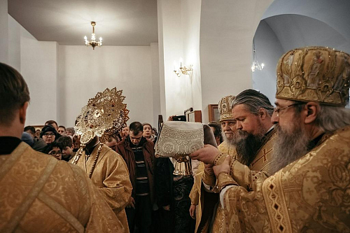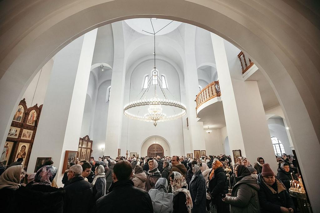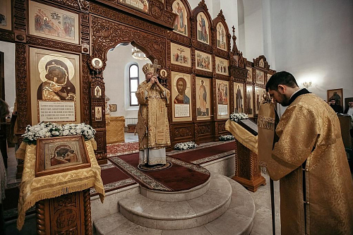 Его Высокопреосвященству сослужили: епископ Верейский Пантелеимон, временный управляющий Юго-Западным викариатством, епископ Наро-Фоминский Парамон, управляющий Северным и Северо-Западным викариатствами, протопресвитер Владимир Диваков, секретарь Святейшего Патриарха по г. Москве, благочинный Центрального округа, настоятель храма «Большое Вознесение», протоиерей Анатолий Кожа, благочинный Параскево-Пятницкого округа, настоятель храма Параскевы Пятницы в Качалове, протоиерей Игорь Федоров, настоятель храма Введения во храм Пресвятой Богородицы в Черневе, духовенство Московской епархии.
