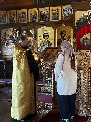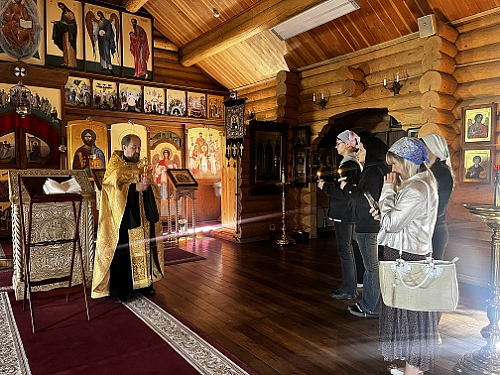 Настоятель храма иерей Владимир Ласкин провел для гостей обзорную экскурсию по храму, после которой отслужил вместе со студентами молебен на начало учебного года.