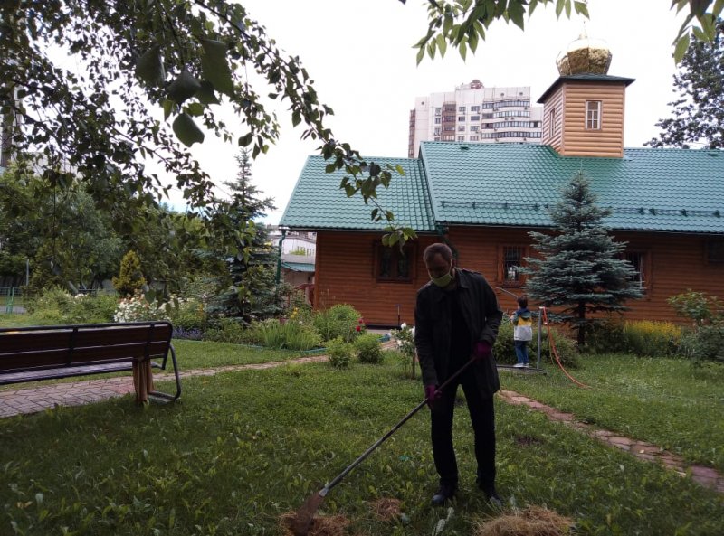 После Божественной Литургии по благословению настоятеля храма иерея Игоря Шарова ребята взяли в руки грабли, метлу и прочий инвентарь и убрали прихрамовые дорожки, газон, облагородили цветочные клумбы, а также убрали дорожки близлежащего сквера. Молодые прихожане были очень рады принять участие в этой постовой акции и вновь помочь любимому храму.