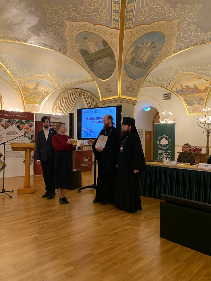 От Юго-Западного викариатства были награждены исполняющий обязанности помощника управляющего викариатством по духовно-нравственному воспитанию молодежи иерей Роман Смирнов и регент сводного молодежного хора Елизавета Кошкина.