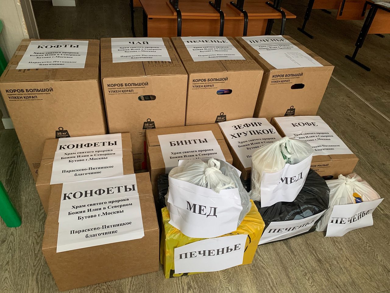 14 декабря собранную гуманитарную помощь общим весом 73 килограмм доставили в пункт сбора гуманитарной помощи в Юго-Западном Викариатстве по адресу ул. Шверника дом 18 к.2