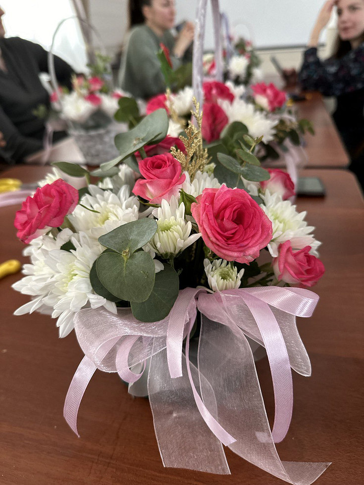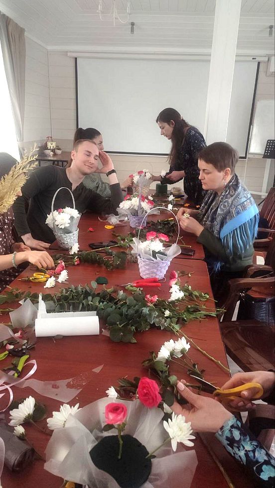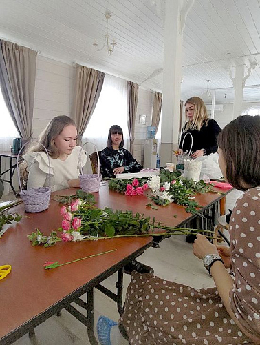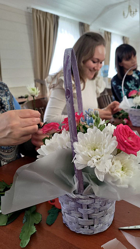 18 февраля 2024 года при храме преподобной Евфросинии Московской состоялся мастер-класс по флористике. Все желающие могли принять участие в изготовлении цветочных композиций.