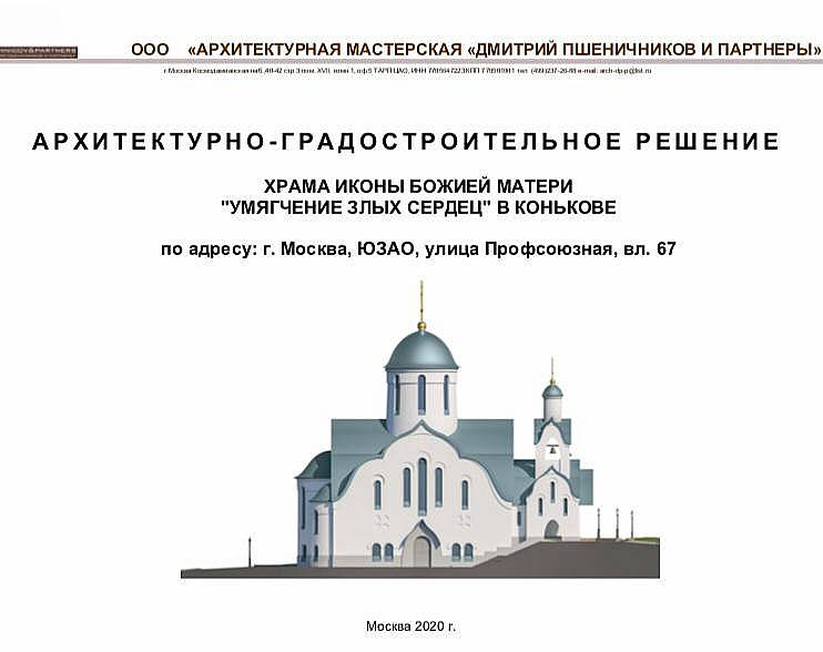 19 января Комитетом по архитектуре и градостроительству г.Москвы (Москомархитектурой) Правительства Москвы выдано свидетельство об утверждении архитектурно-градостроительного решения объекта капитального строительства : Храм иконы Божией Матери «Умягчение злых сердец» в Конькове.
