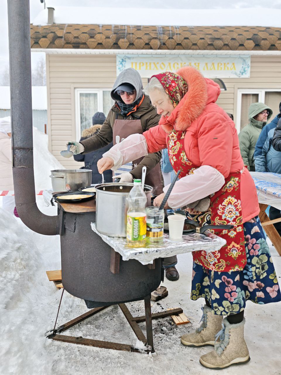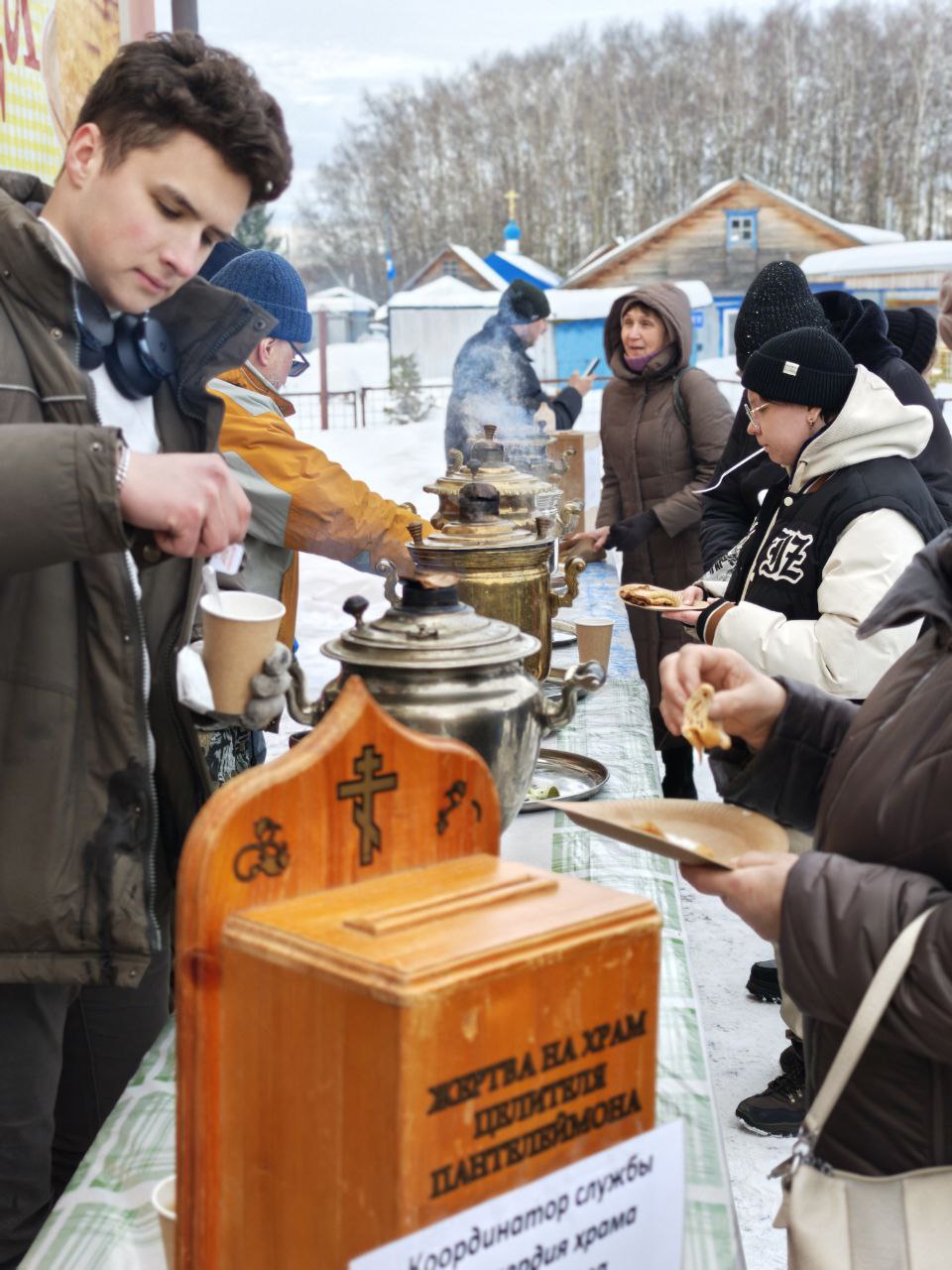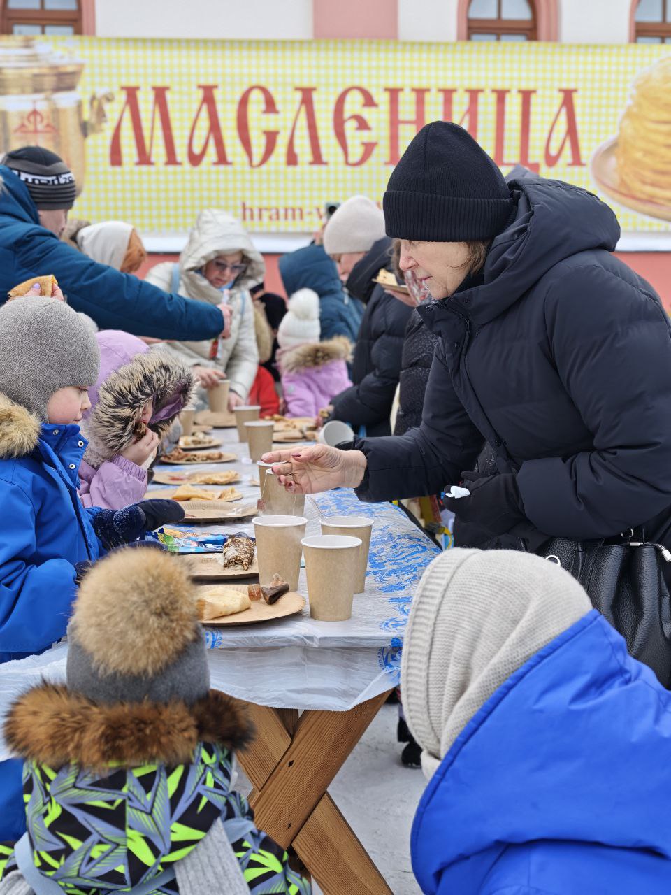 Гостей щедро угощали блинами всех видов, горячим чаем и другими согревающими напитками, с любовью и заботой приготовленными в трапезной храма и самими прихожанами – угощения хватило всем!